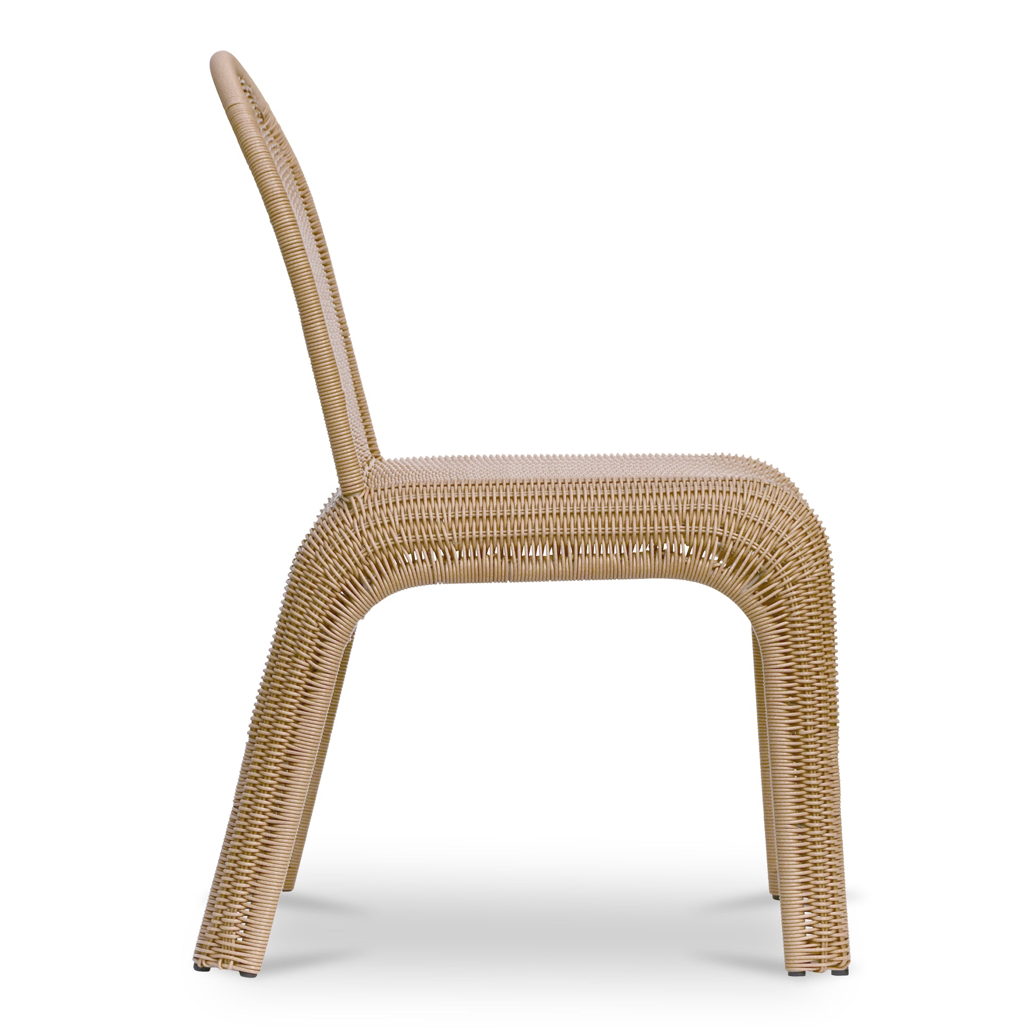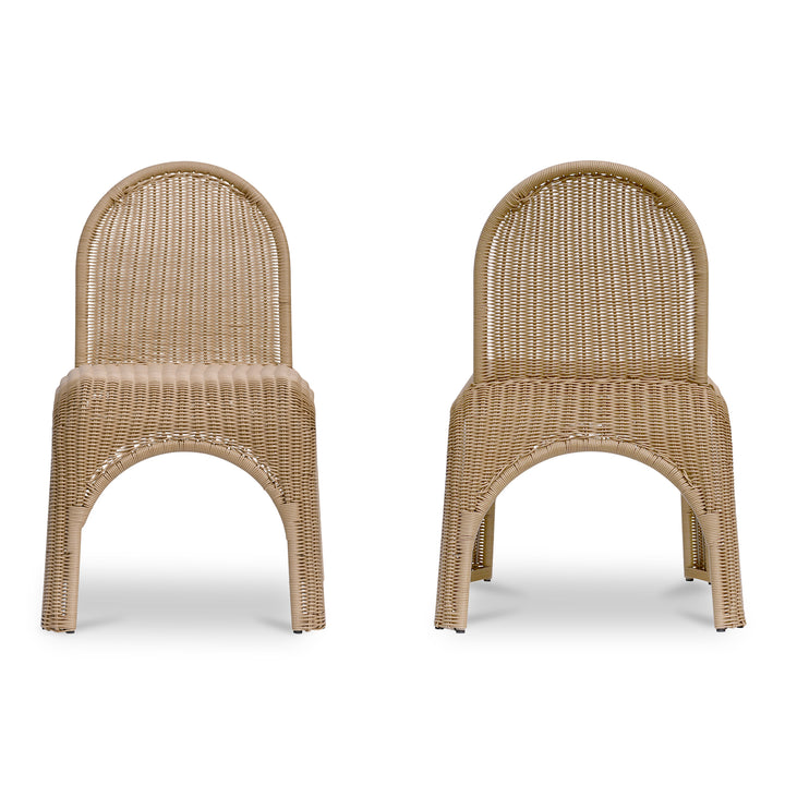 Maireth Outdoor Dining Chair, Curved Wicker Design, Iron Frame, Natural Finish - Set of 2