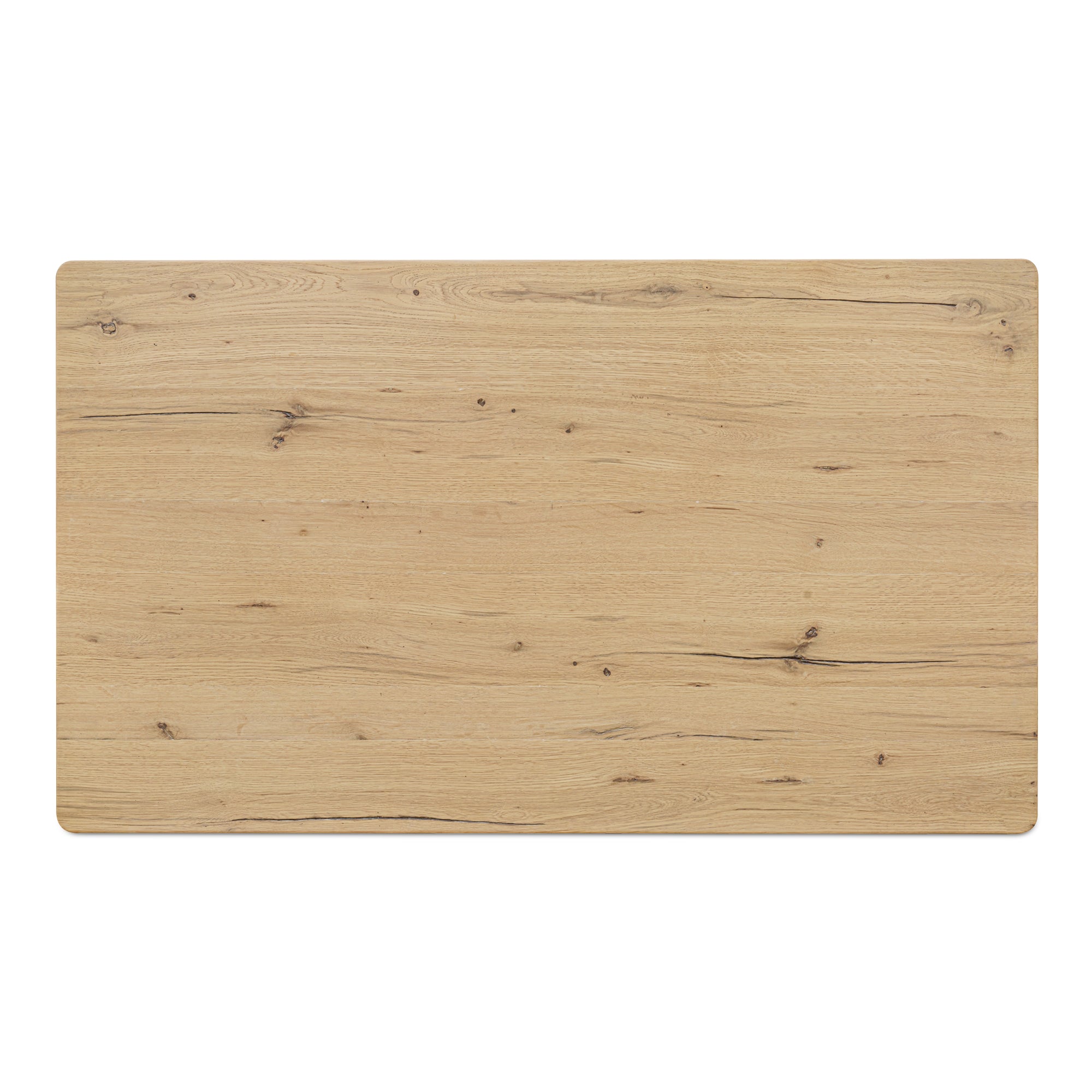 Mareth Coffee Table, Rectangular Rustic Oak Top with Rounded Edge, Solid Oak Legs Dual-Sided Drawers, Natural