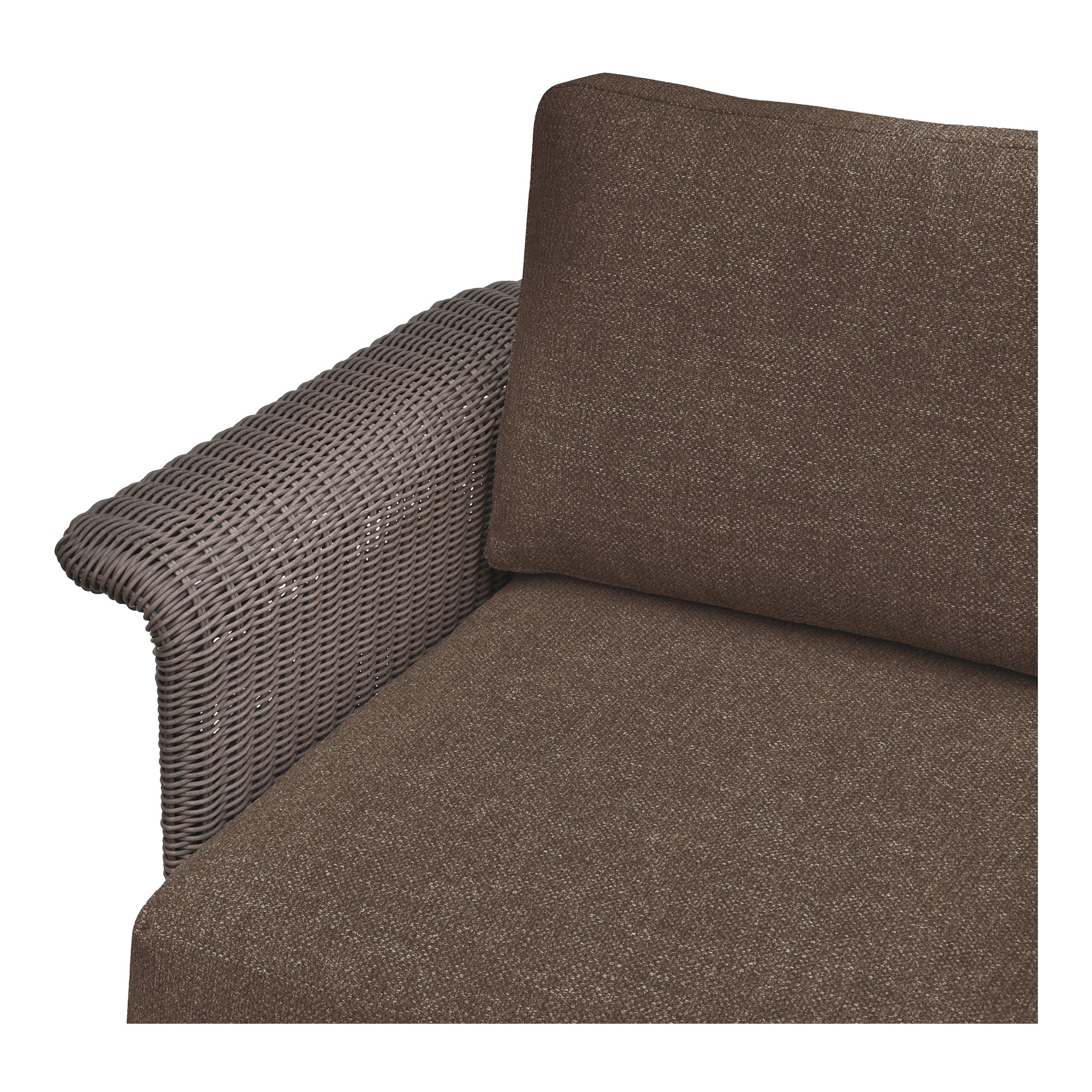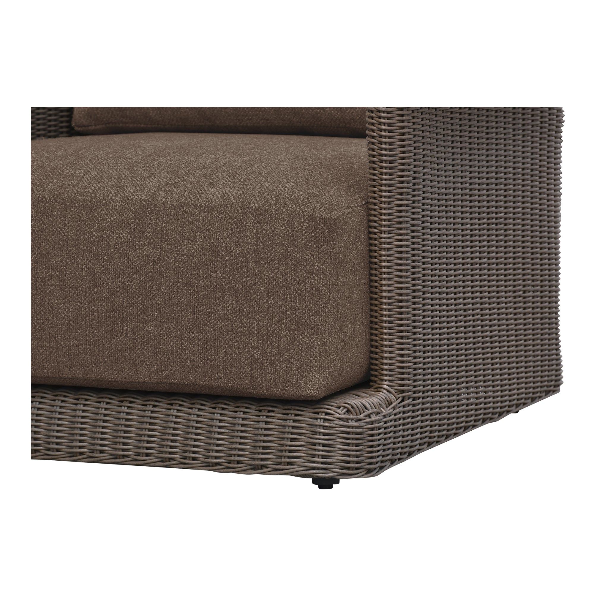 The Mareth Outdoor Accent Chair by Nadaal Studios brings bold, sculptural comfort to your patio or garden. Featuring a tulip-shaped frame crafted from synthetic wicker and supported by an aluminum structure, this chair delivers both durability and style. Its substantially padded seating, quick-dry foam, and rich brown tone create a luxurious yet grounded addition to any outdoor lounge.