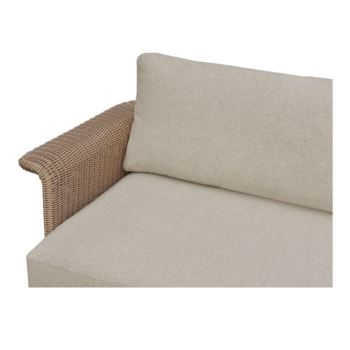 Mareth Outdoor Sofa, Tulip Shape, Woven Wicker & Cushioned Seating, Beige - Seats 3