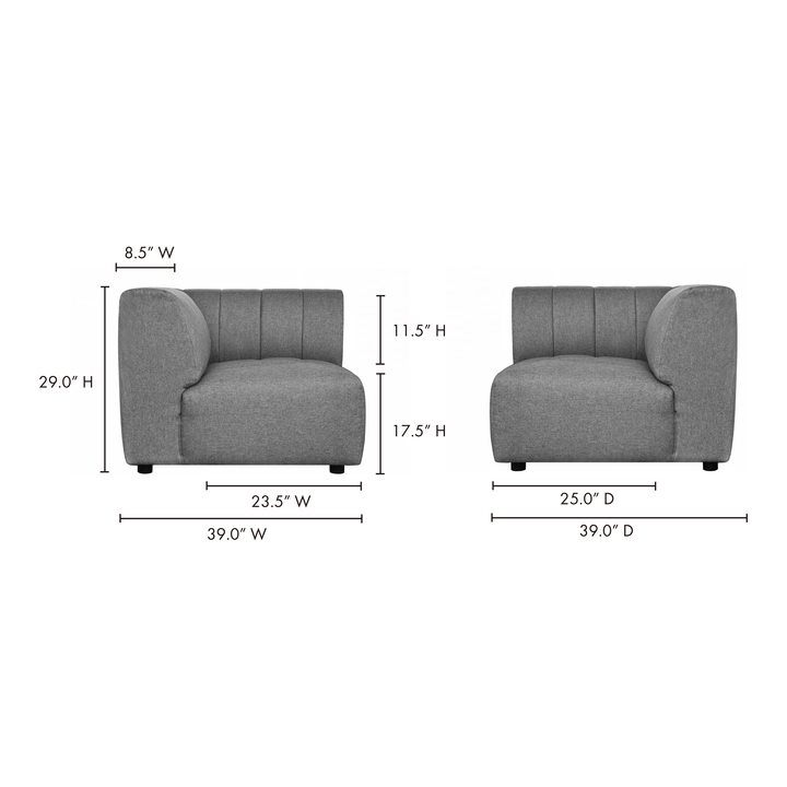Marley, Corner Chair Contemporary Channel Stitched Polyester, Grey