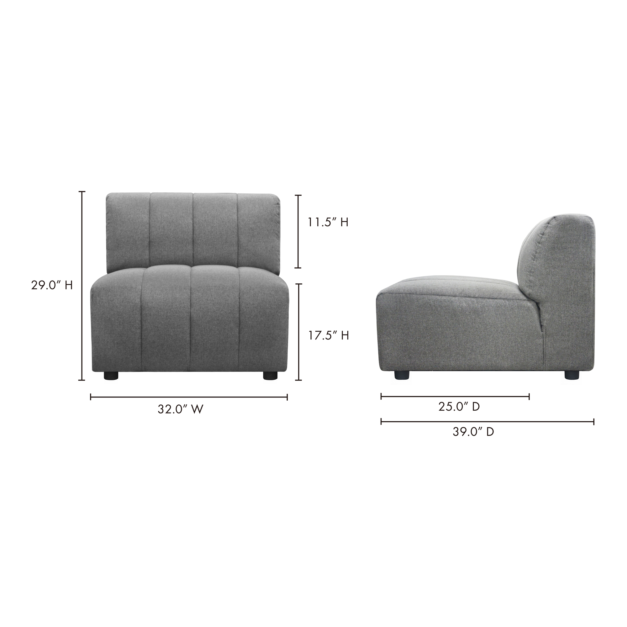 Marley Slipper Chair, Channel-Stitched Upholstery, Modular Contemporary Seating, Grey