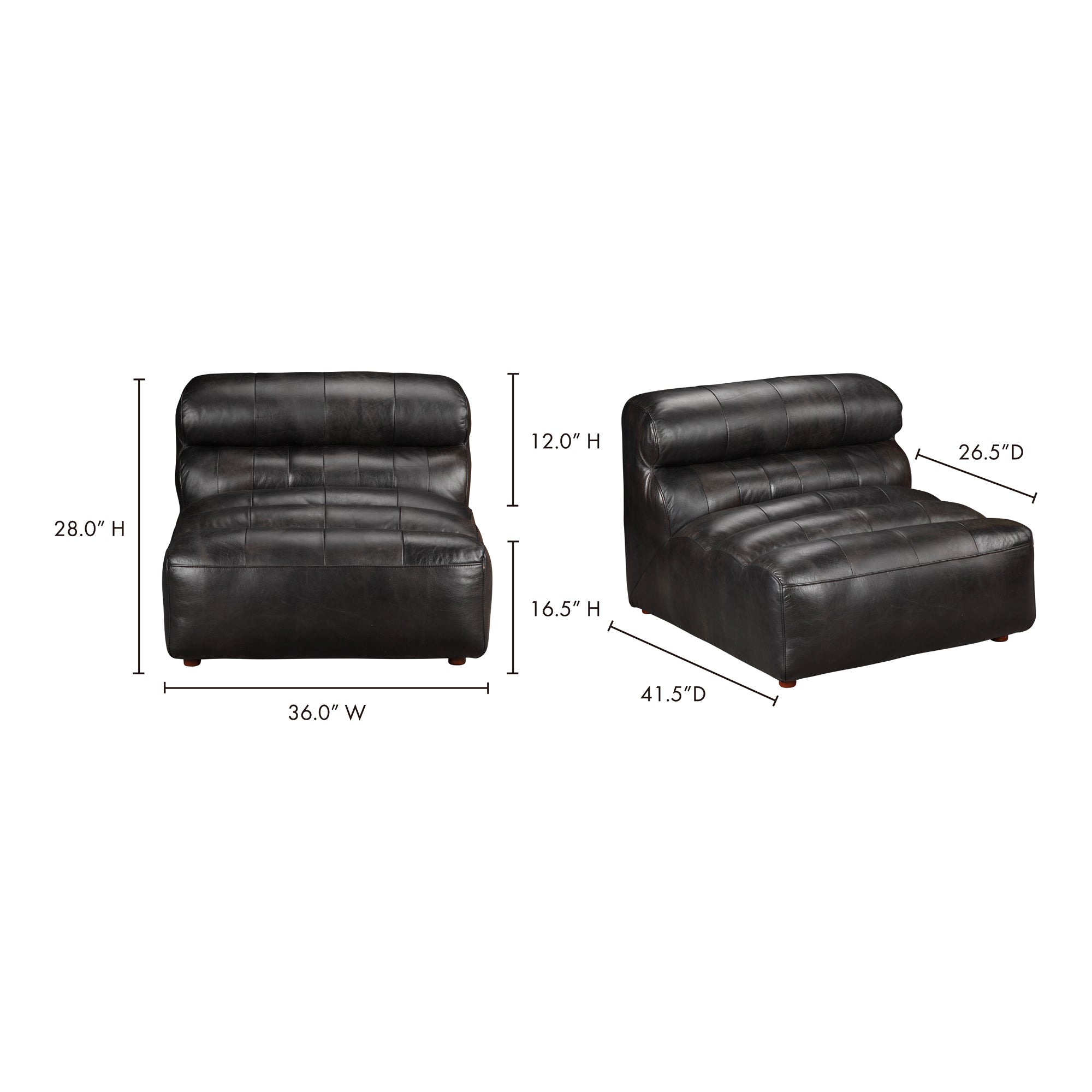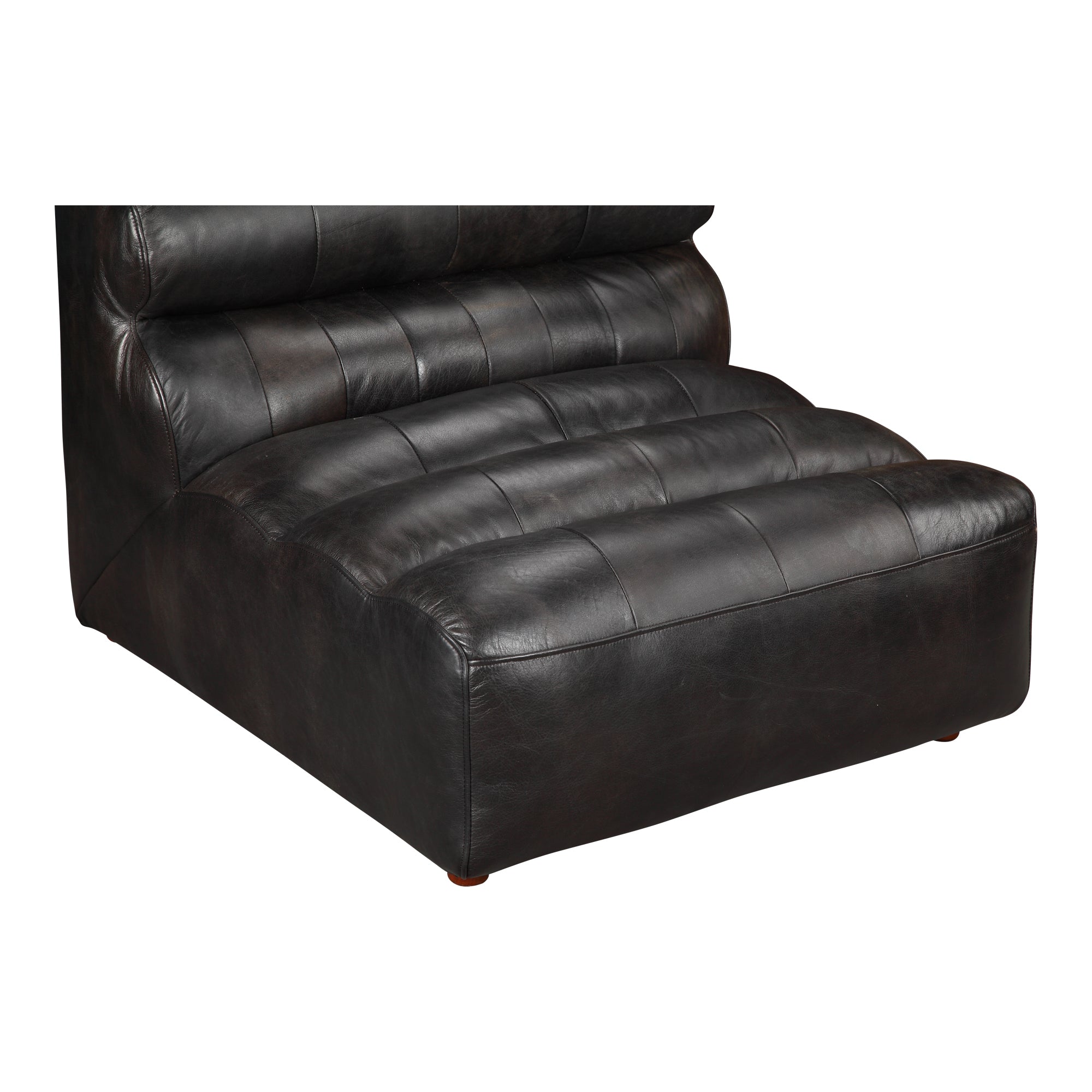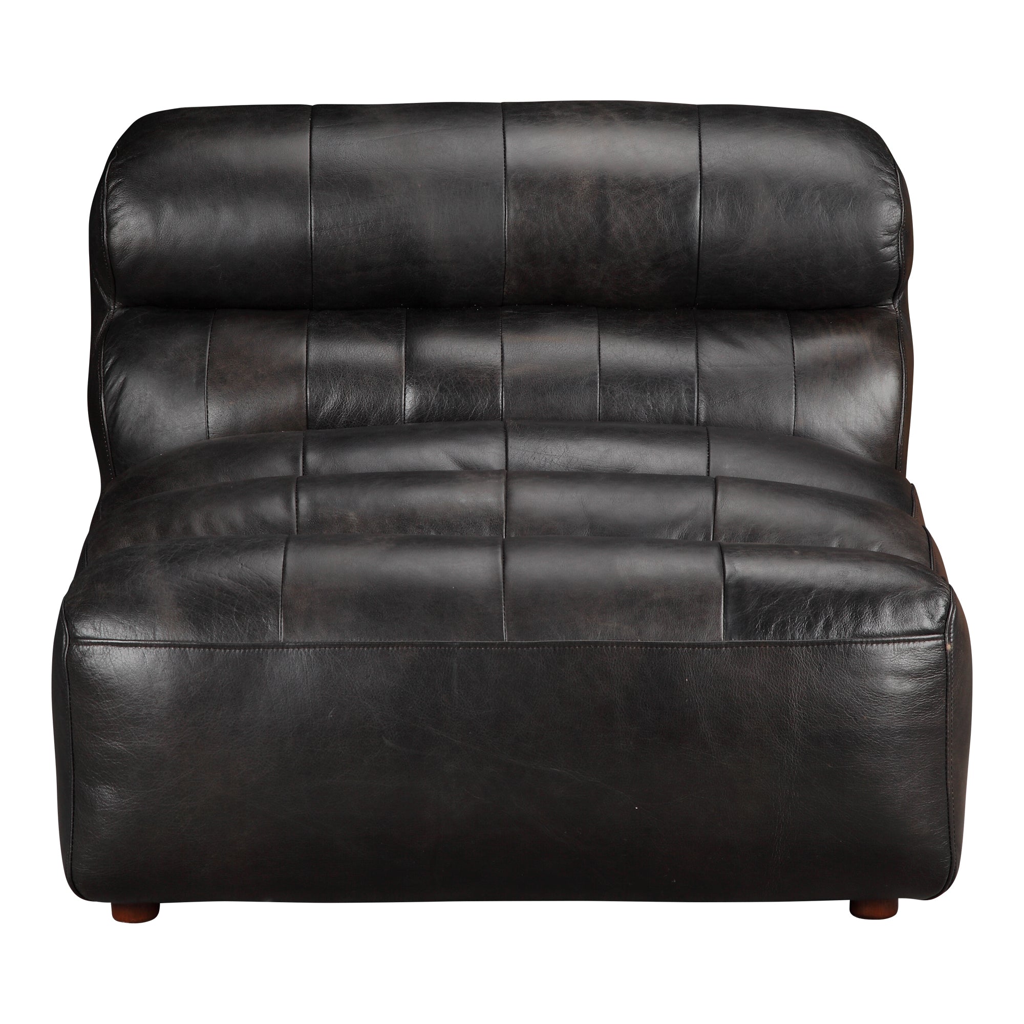 Meadow Slipper Chair, Top-Grain Buffalo Leather, Contemporary Design with Feather-Fill Cushions, Black