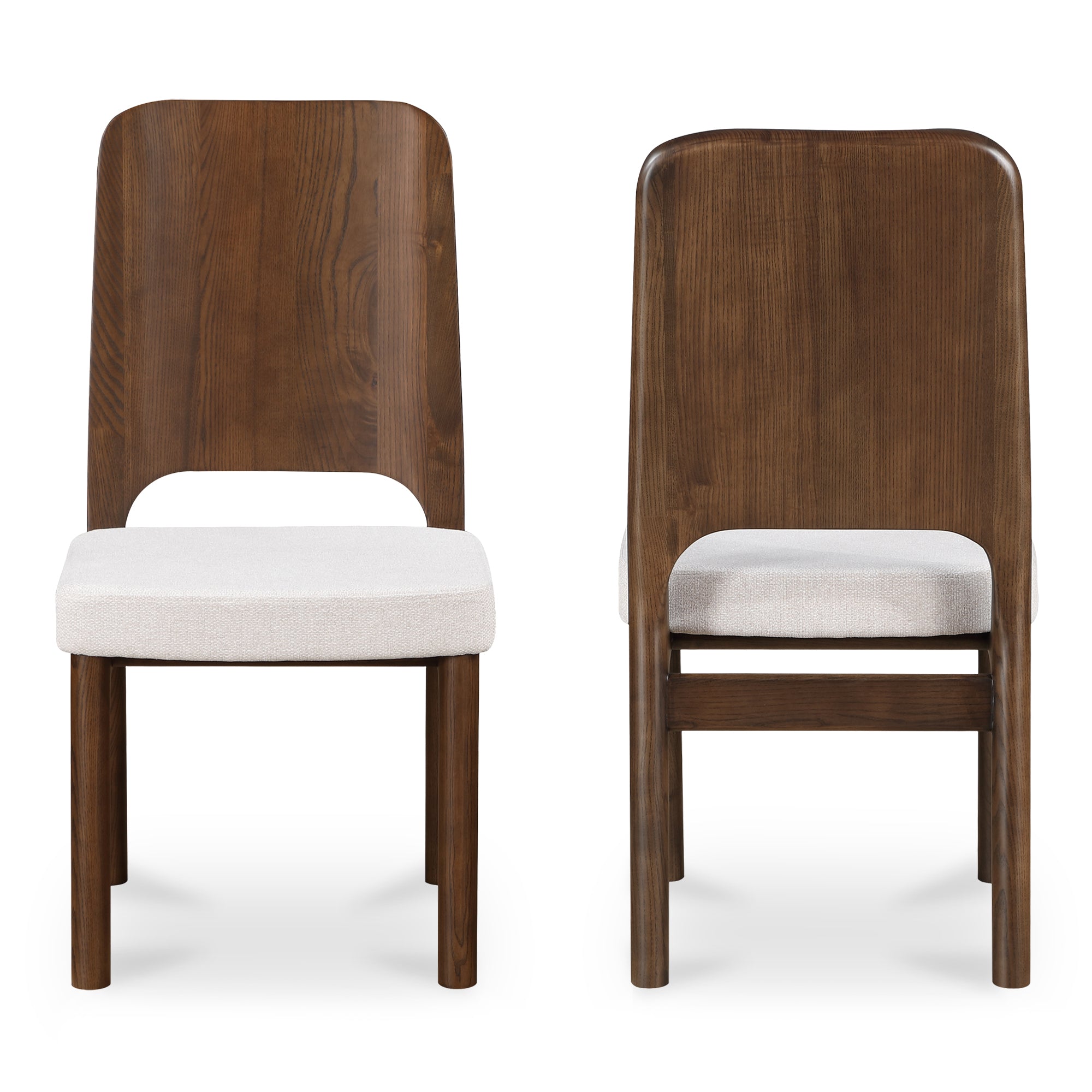 Melisette Dining Chair, Walnut Stained Solid Ash Frame with Beige Performance Fabric Upholstery - Set of 2