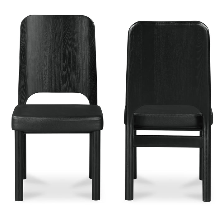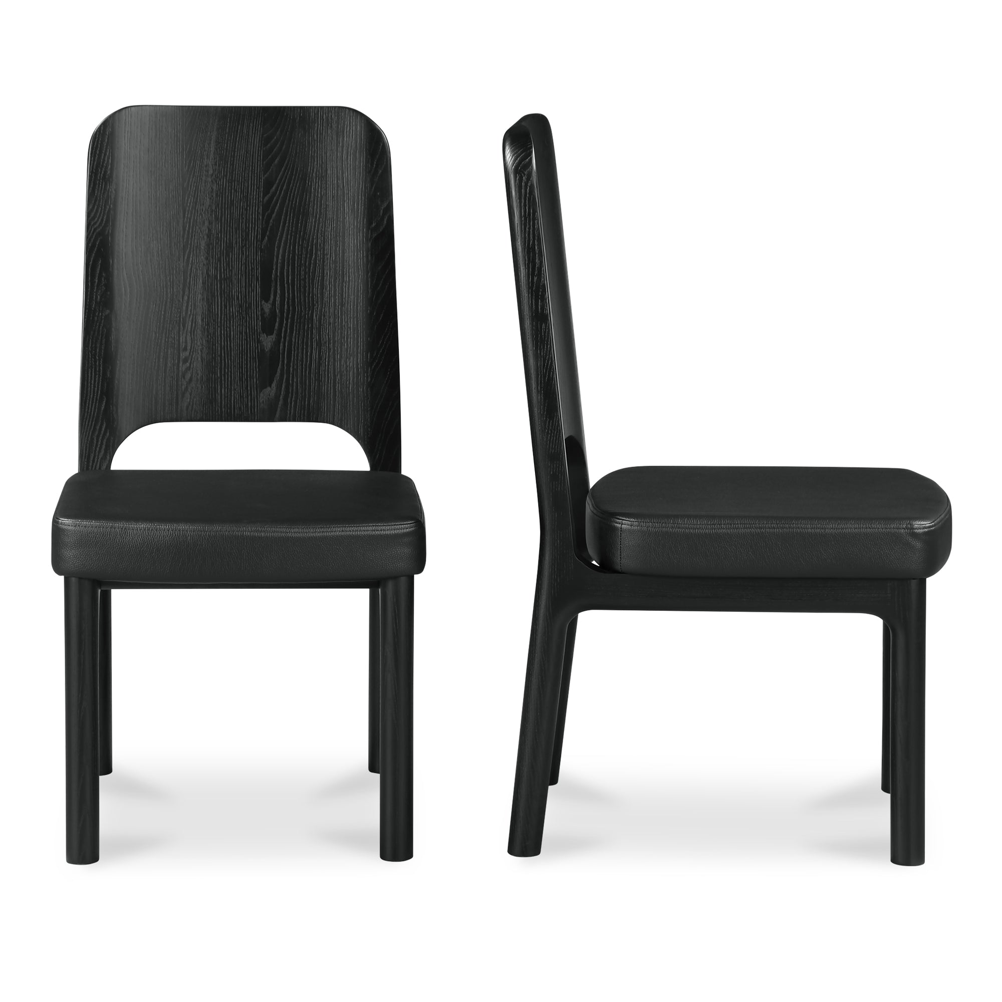 Melisette Dining Chair, Walnut Stained Solid Ash Frame with Black Vegan Leather Upholstery - Set of 2