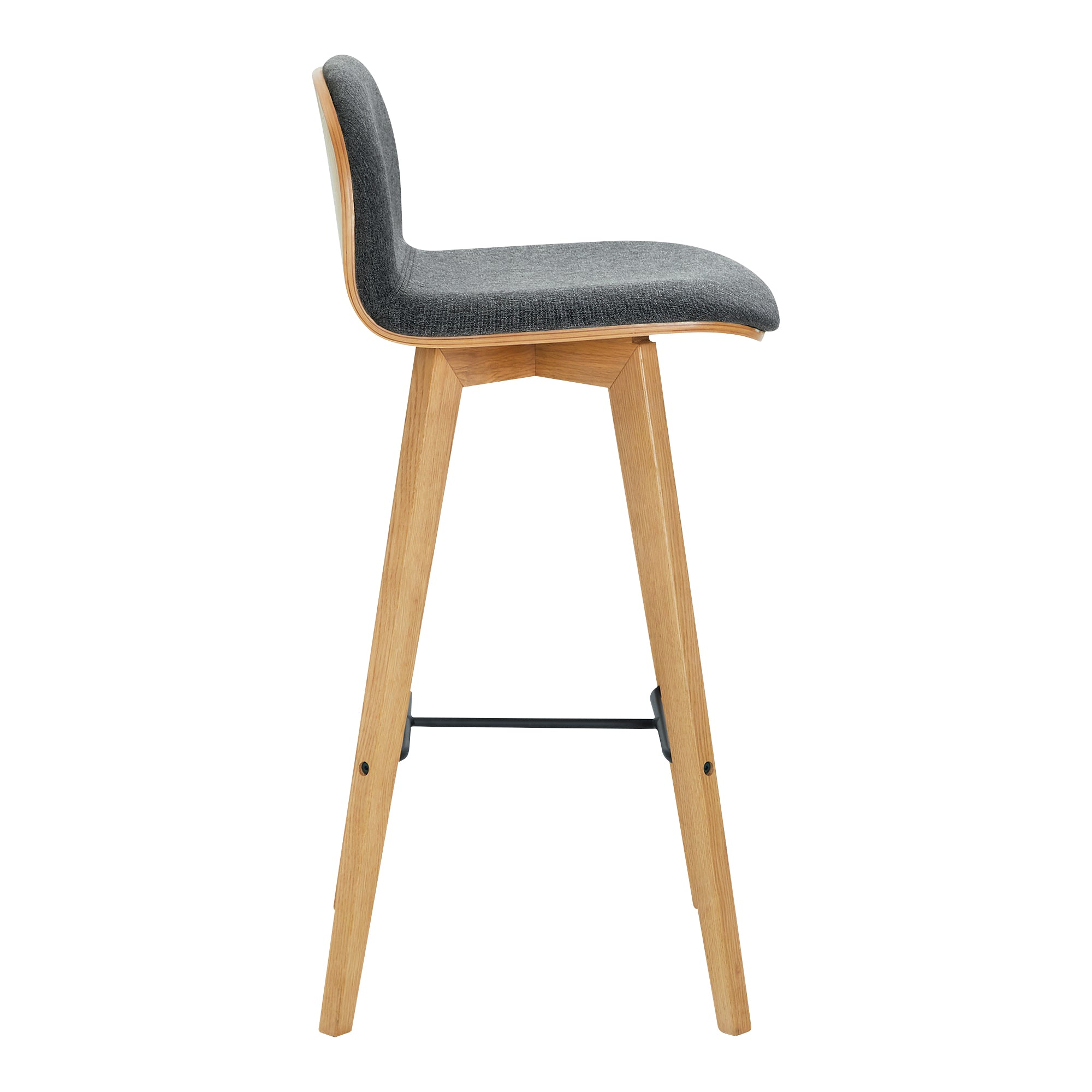 Milan, Bar Stool Polyester with Solid Oak Legs, Grey