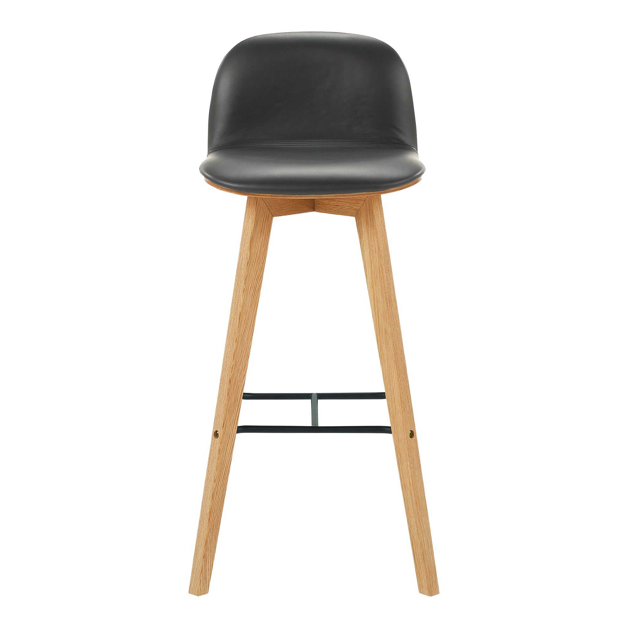 The NADAAL STUDIOS Milan Bar Stool perfectly combines modern functionality and timeless design. Upholstered in 100% top-grain leather, this bar stool features a bentwood seat and a solid oak frame for exceptional durability. The black finish adds a sleek and contemporary look to any bar setting. Ideal for evening cocktails, the Milan Bar Stool provides both style and comfort for your social gatherings. Its luxurious leather upholstery and robust construction make it a standout piece that enhances any space. The sleek design and high-quality materials ensure that this bar stool is not only stylish but also built to last.