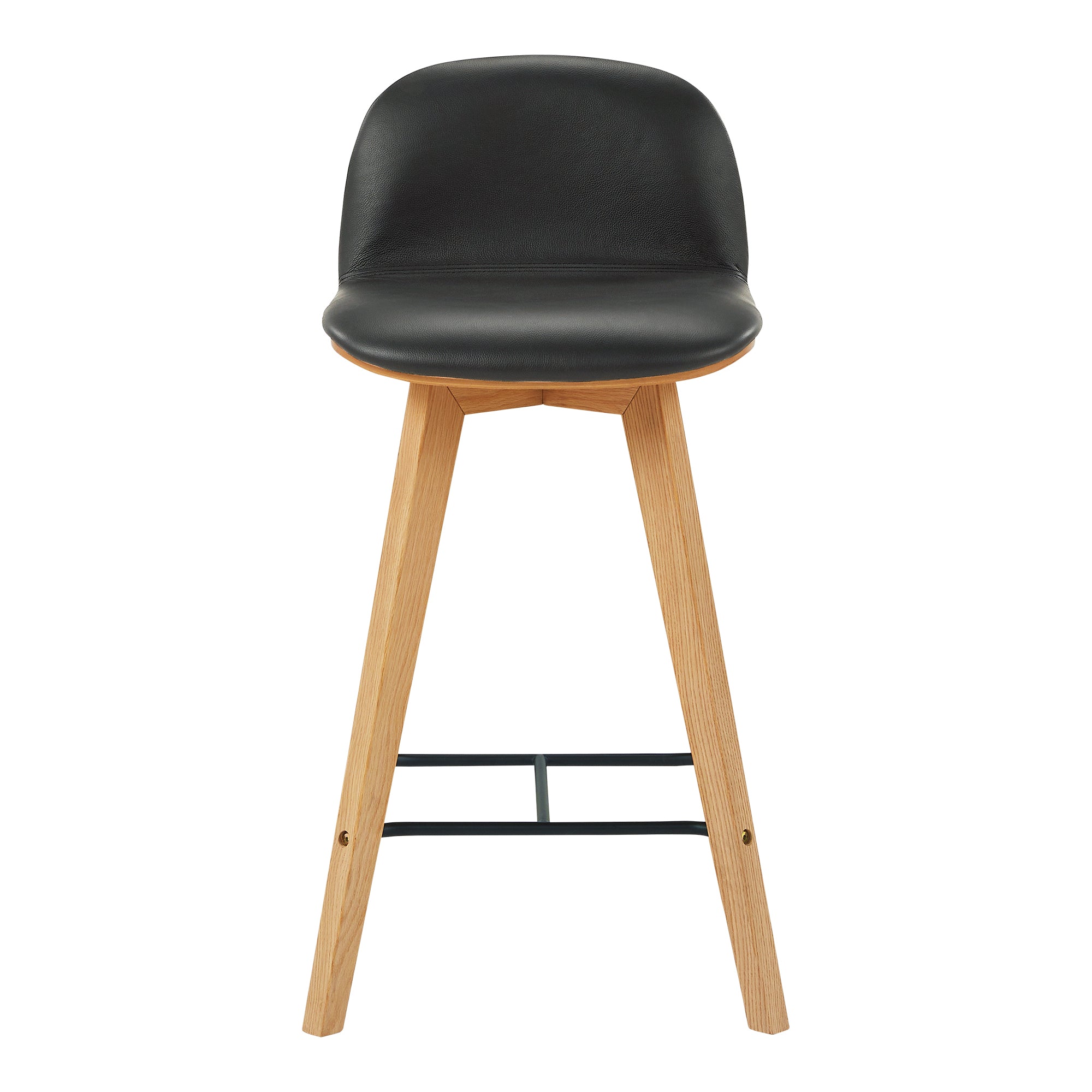 The NADAAL STUDIOS Milan Counter Stool offers a blend of modern style and timeless elegance. Upholstered in 100% top-grain leather, this stool features a bentwood seat and a solid oak and metal frame for superior durability. The black finish provides a sleek and contemporary look, perfect for any modern kitchen or bar area. Enjoy the combination of comfort and style with the Milan Counter Stool, designed to provide both elegance and functionality. Its luxurious leather upholstery and sturdy construction make it a standout piece that enhances any space. The sleek design and high-quality materials ensure that this stool is not only stylish but also built to last.