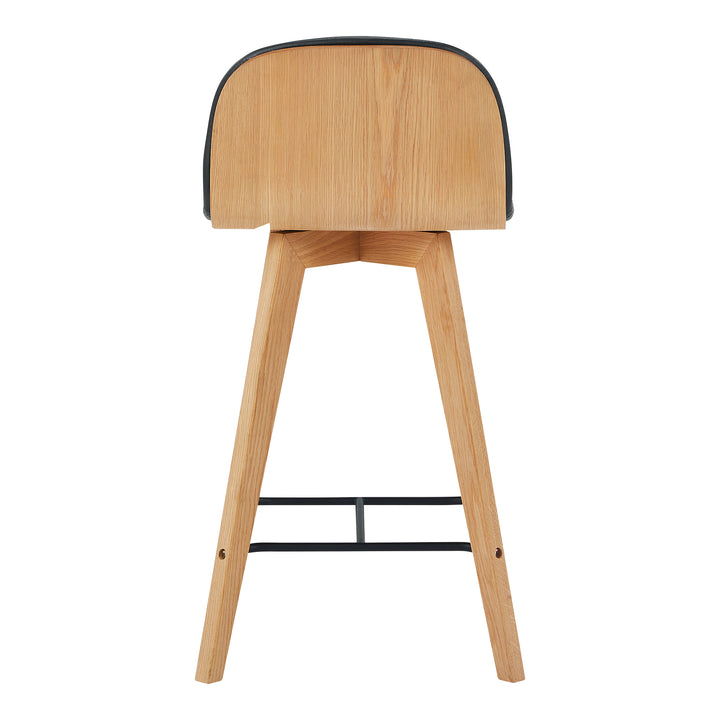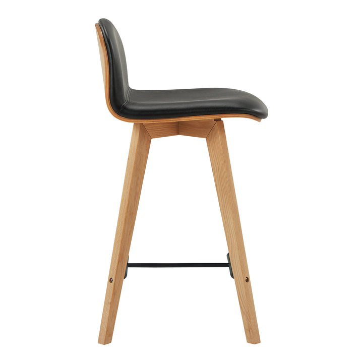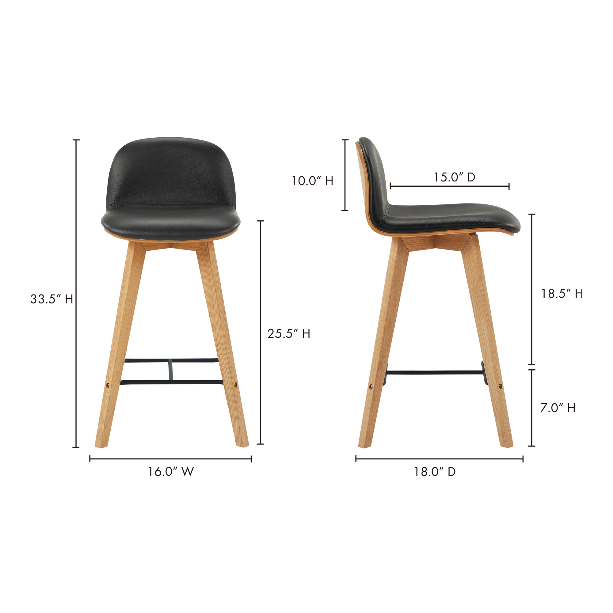 Milan, Counter Stool Top-Grain Leather with Bentwood Seat, Black