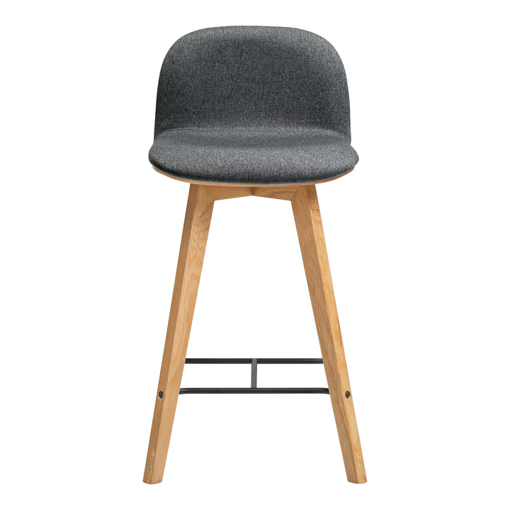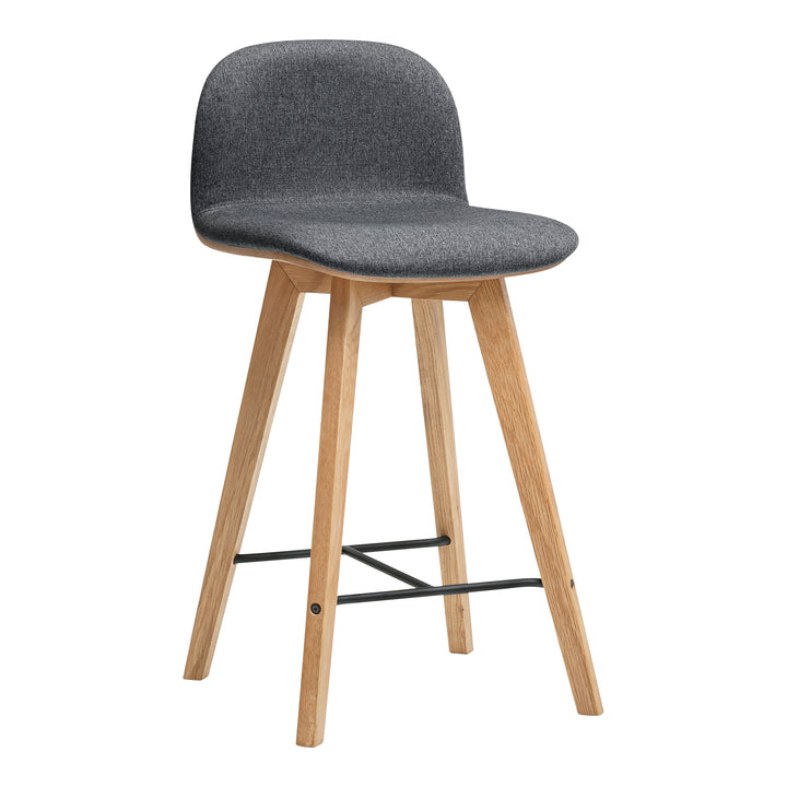 Milan, Counter Stool Upholstery Polyester Solid Oak and Metal Frame, Grey
