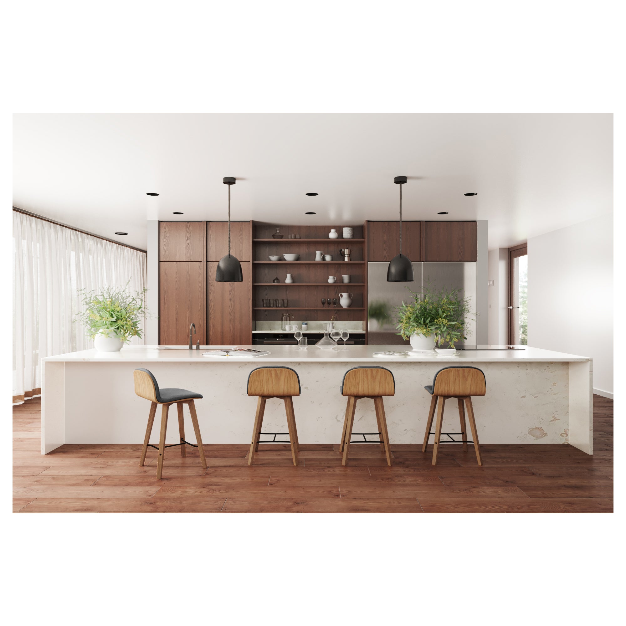 The NADAAL STUDIOS Milan Counter Stool seamlessly blends modern functionality with timeless design. Upholstered in 100% polyester, this counter stool features a solid oak and metal frame that ensures durability and style. The grey finish offers a neutral yet elegant look that complements any contemporary home decor. Perfect for your kitchen counter or bar area, the Milan Counter Stool provides both comfort and sophistication. Its Scandinavian design is modeled for the contemporary hipster, providing a soft curve for low back support and maximum comfort. Crafted with attention to detail, this stool is not only a functional piece but also a stylish addition to your living space.