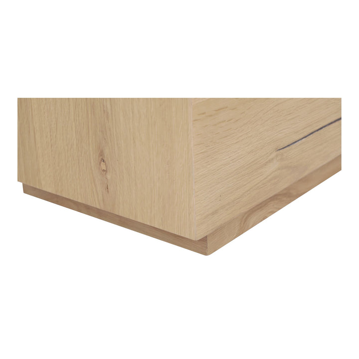 Natural and nuanced, Mirelda showcases the warmth of rustic oak in a slim, recessed-base design. The minimalist rectangular top rests on a sturdy construction of solid oak and thick oak veneer over MDF, striking the right balance between beauty and resilience. Equally at home as a coffee table or occasional bench, it adapts to how you live. Each piece reveals unique grain and knots, bringing organic personality that feels collected and effortlessly timeless.
