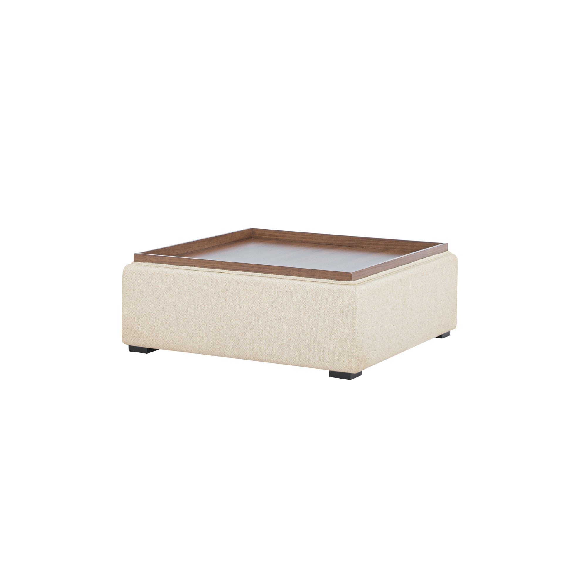 Mirelda Ottoman, Dual-Function Upholstered Top with Tray Surface, Polyester Upholstery, Flecked Oat