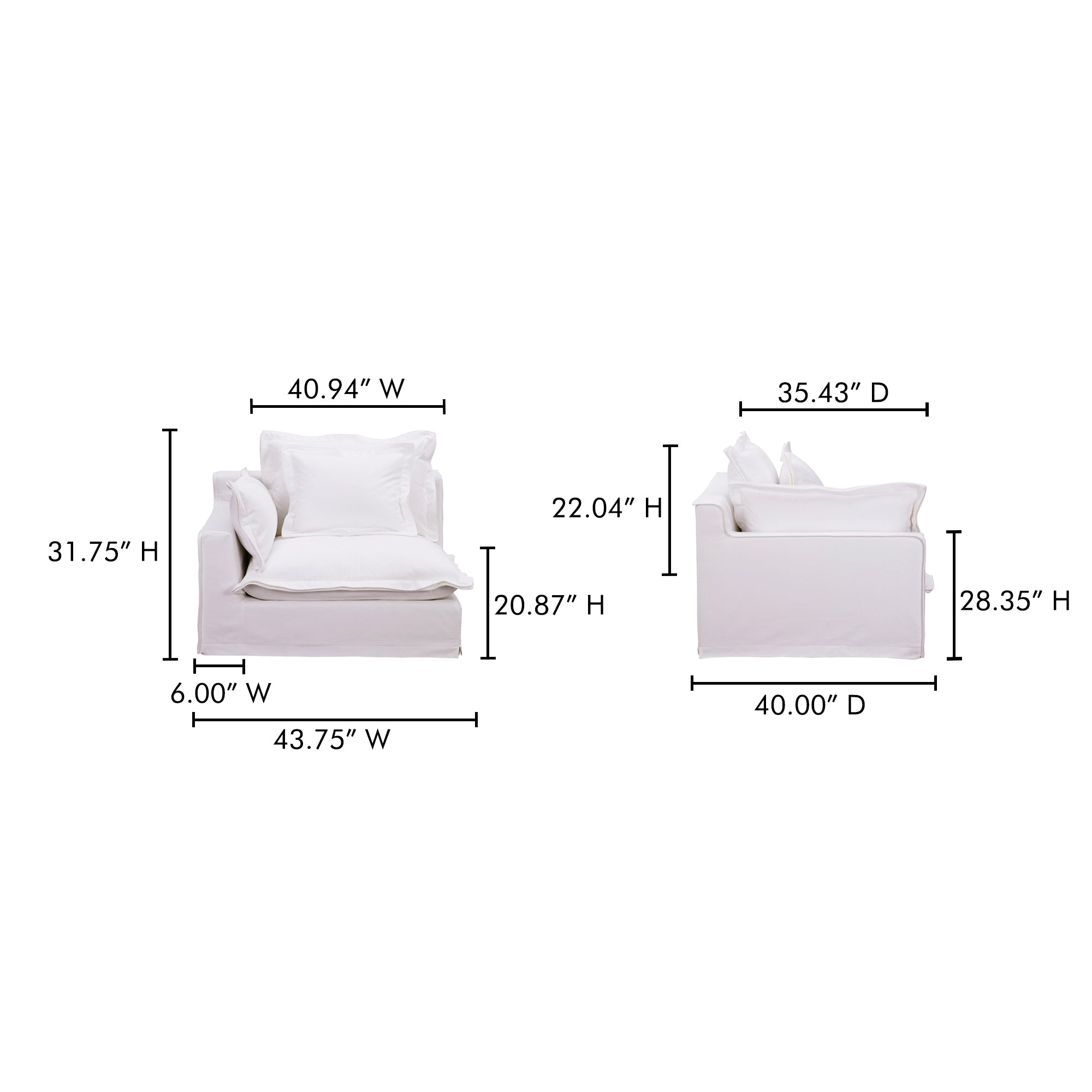 The NADAAL STUDIOS Morgan left arm facing Chair combines timeless design with modern functionality, offering a chic, rustic aesthetic that enhances any space. This chair is upholstered in white LiveSmart performance fabric, which is as durable as it is stylish, designed to withstand the rigors of daily life while maintaining a pristine appearance. The gentle sloped arms and elegant slipcover design nod to traditional craftsmanship, while the innovative materials ensure long-lasting wear. Whether placed in a cozy corner or used as a focal point in your living room, this chair invites relaxation and conversation, making it a perfect addition to your home.