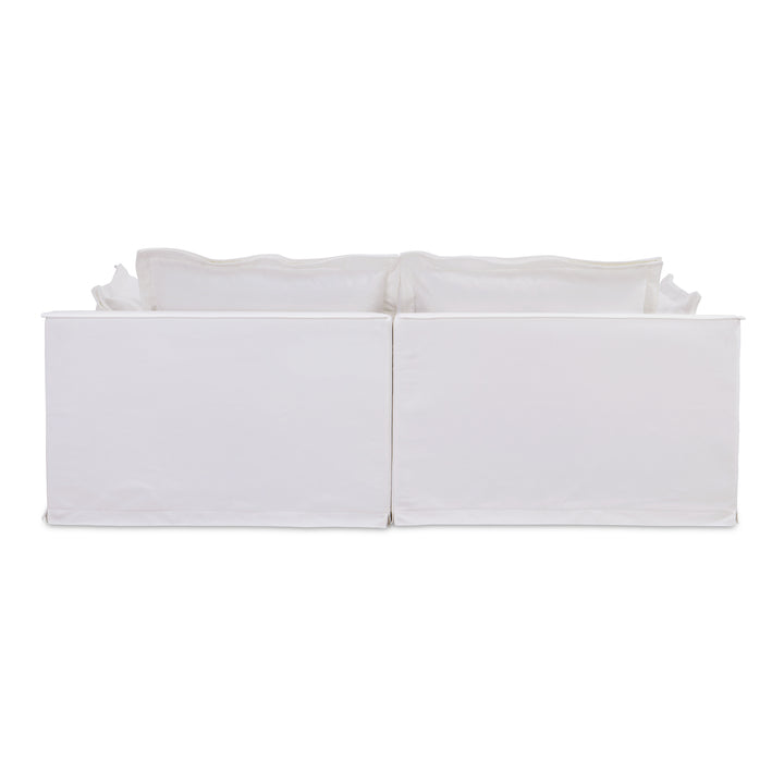 The Morgan Modular Sectional by Nadaal Studios is designed to offer both style and comfort, making it a standout piece in any living room. Upholstered in LiveSmart Performance Fabric, this sectional is not only soft to the touch but also resistant to stains and spills, ensuring it remains looking fresh and clean. The white upholstery adds a bright, modern touch to your space, while the removable and reversible cushions provide ultimate comfort with their foam core, feather, and polyfill blend. Supported by a solid wood and plywood frame, along with S-springs and webbing, this sectional is built for long-lasting use. The gentle sloped arms and slipcover design nod to traditional elegance while embracing contemporary ease.