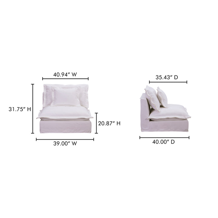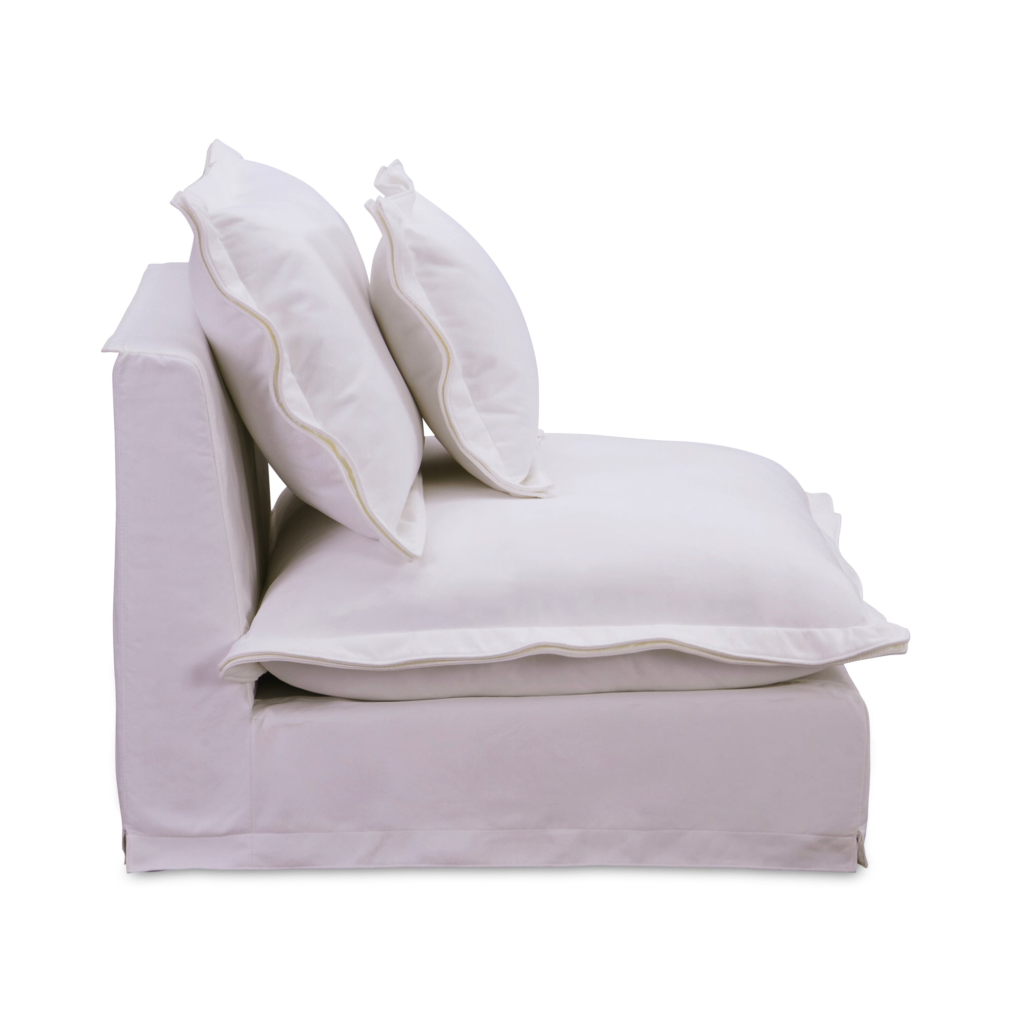 Morgan Slipper Chair, Livesmart Performance Fabric, Rustic Design with Feather-Wrapped Cushions, White