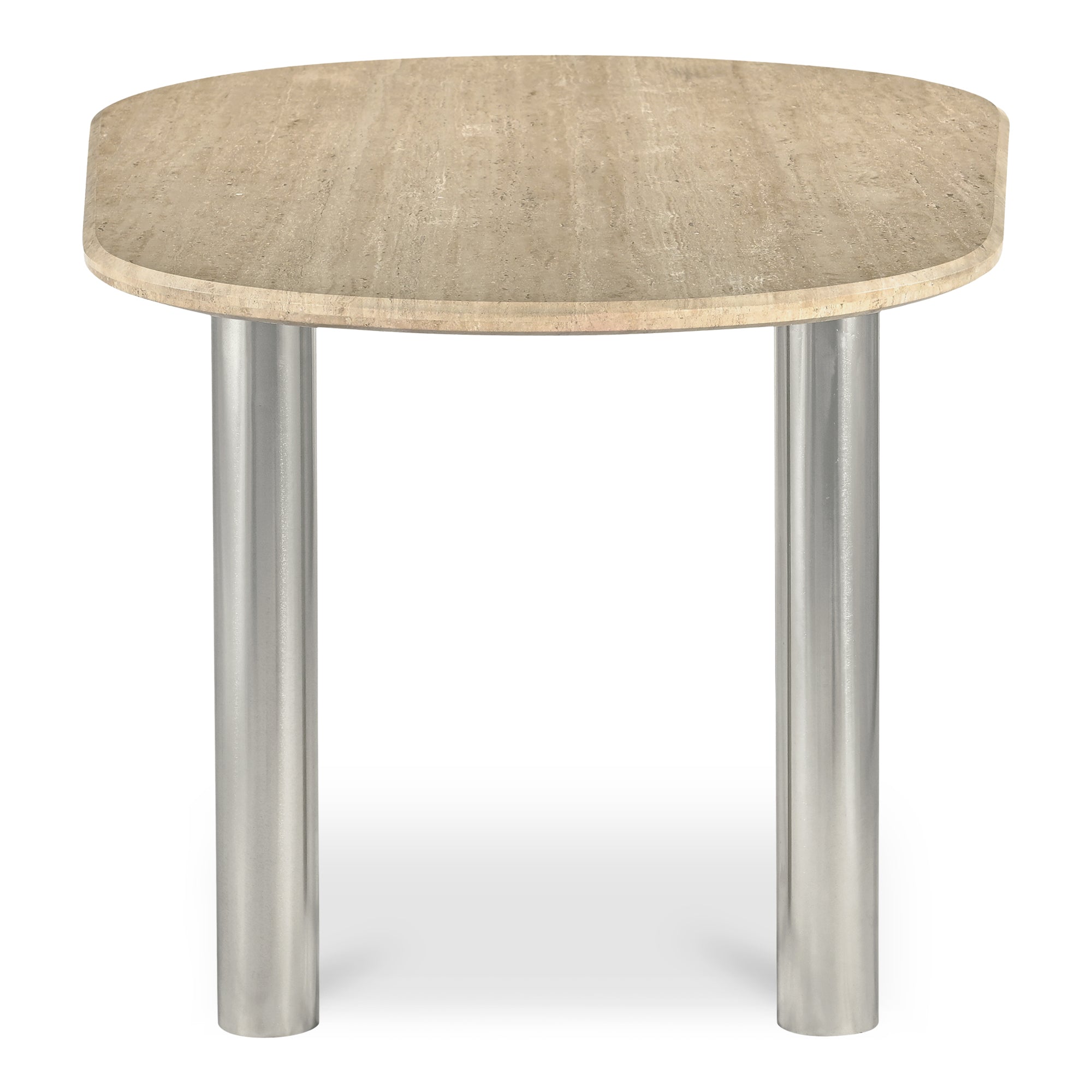 Neo, Dining Table for 4, Italian Travertine Top, Chrome Iron Base, Beige