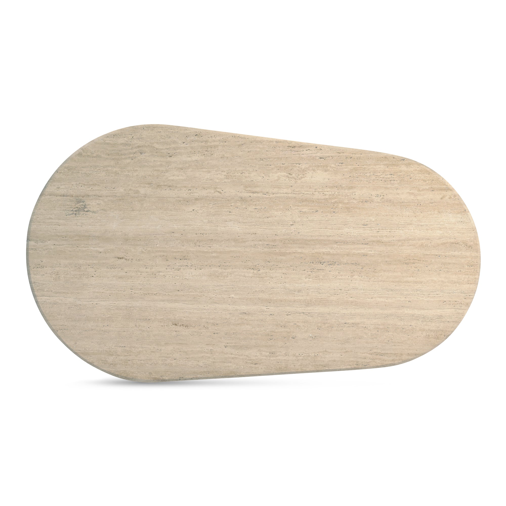 The Neo dining table from NADAAL STUDIOS is an exquisite piece that combines modern elegance with natural beauty. Featuring a thin, solid Italian beige travertine top, each table is unique due to the natural variances in the stone's tone and markings. The chrome finished iron base adds a sleek, contemporary touch, providing robust support and a striking contrast to the travertine top. Designed to seat four comfortably, the Neo dining table is perfect for intimate dinners and gatherings. This freeform table is not only a functional dining solution but also a stunning focal point that enhances the aesthetic appeal of any dining space.