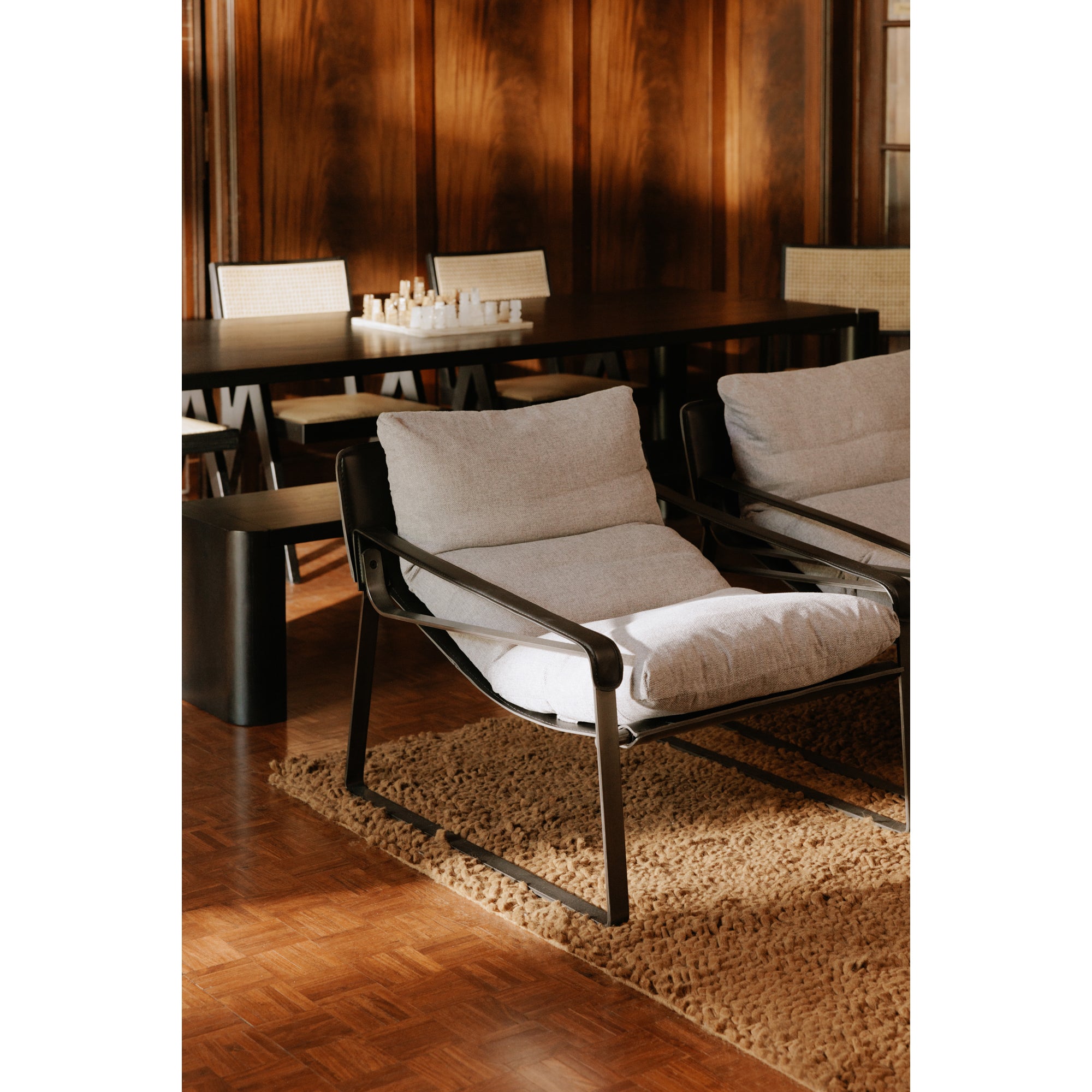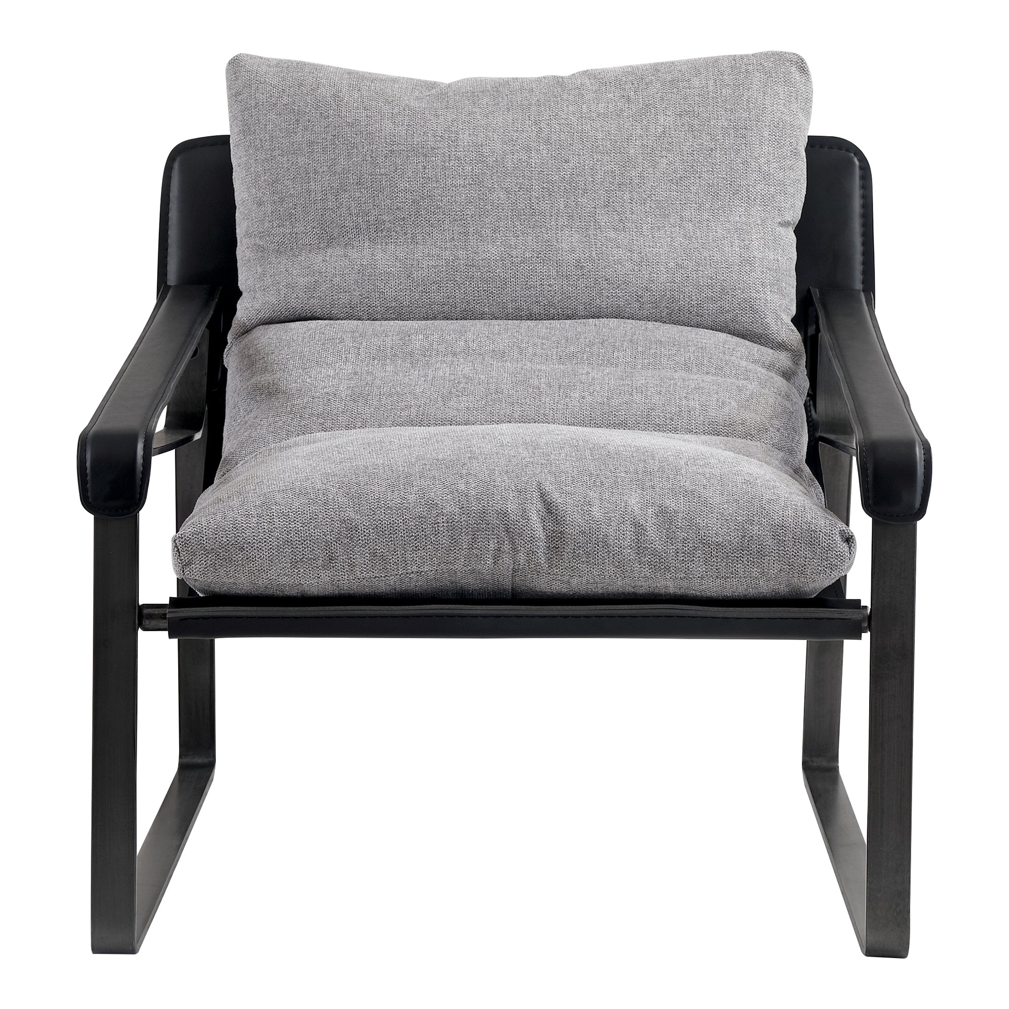 Discover the perfect blend of modern style and ultimate comfort with the NADAAL STUDIOS Newton Accent Chair. This contemporary chair features a feather-filled cushion upholstered in a sophisticated grey fabric, offering both elegance and plush seating. The sturdy iron frame is complemented by bonded leather armrests and a supportive sling, providing a touch of luxury and enhancing the chair's sleek design. The Newton Accent Chair is designed for ease and requires no assembly, making it an effortless addition to any living space, office, or lounge. Its modern aesthetics and comfortable features make it a standout piece in any decor.
