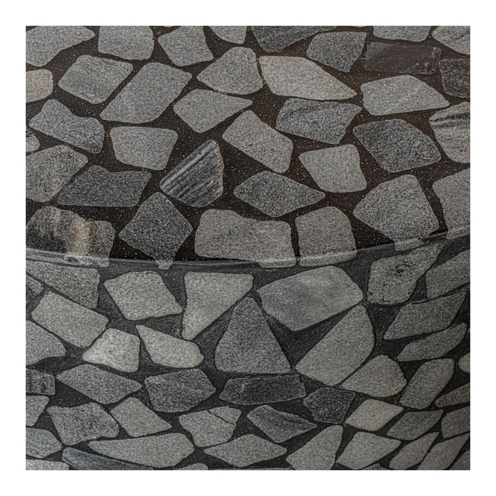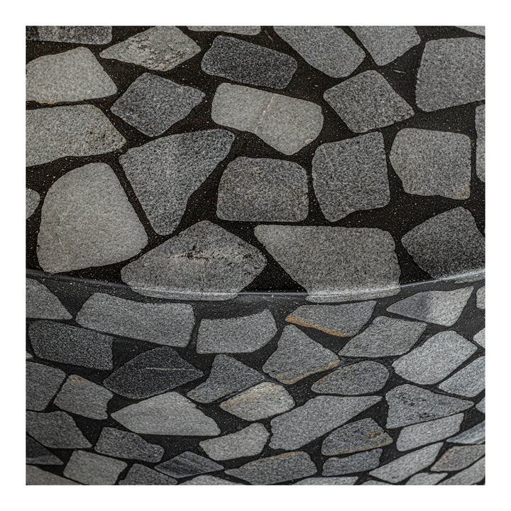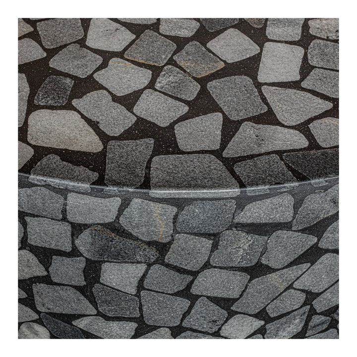 Oberyn Outdoor Coffee Table, Hand-Placed Marble, Concrete Plinth Design, Black