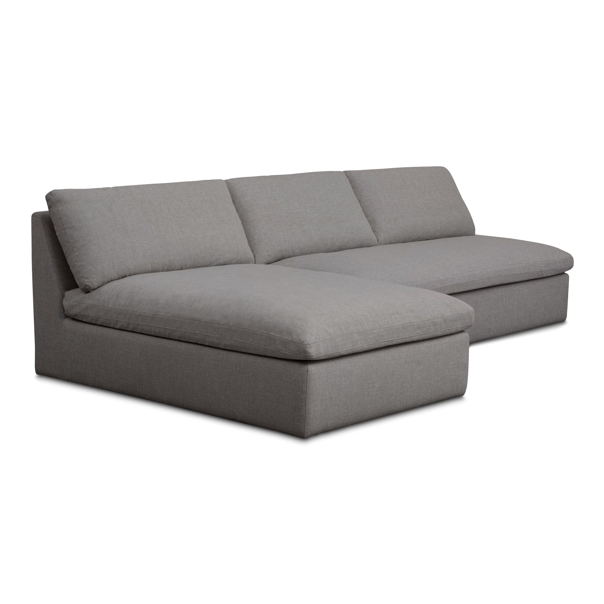 Odessa Outdoor Modular Sectional, 2-Piece Set, Weather-Resistant Performance Fabric, Speckled Design, Quick-Dry Foam, Aluminum Frame, Light Grey
