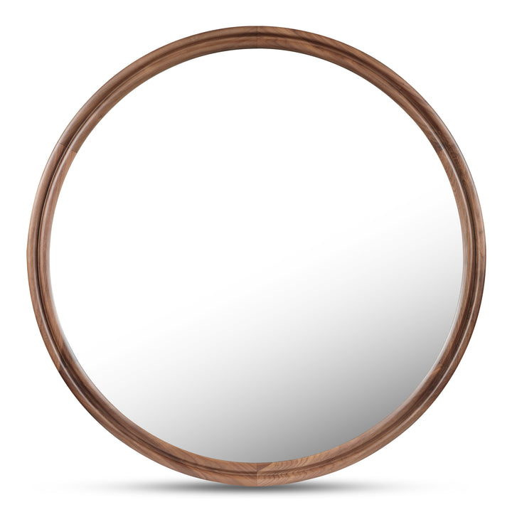 Olyen Mirror, Large Round Solid Walnut Frame with Double Edge Detail, Natural Walnut