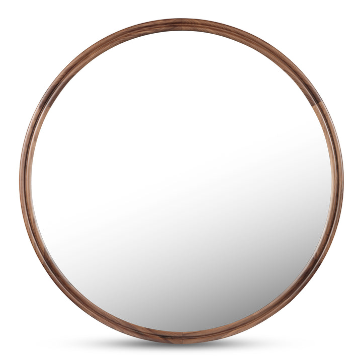 Olyen Mirror, Small Round Solid Walnut Frame with Double Edge Detail, Natural Walnut