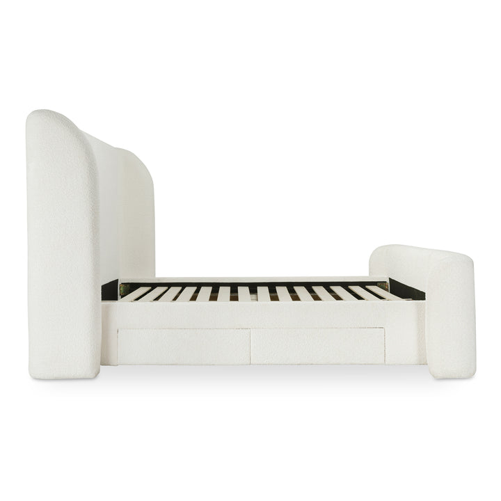 Omri, Queen Bed with Recycled Polyester Upholstery and Storage Drawers, Cream