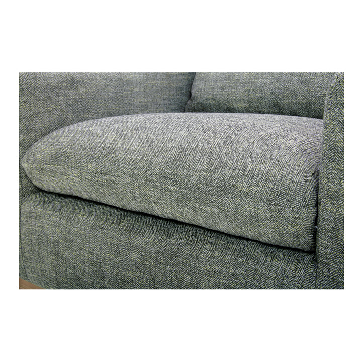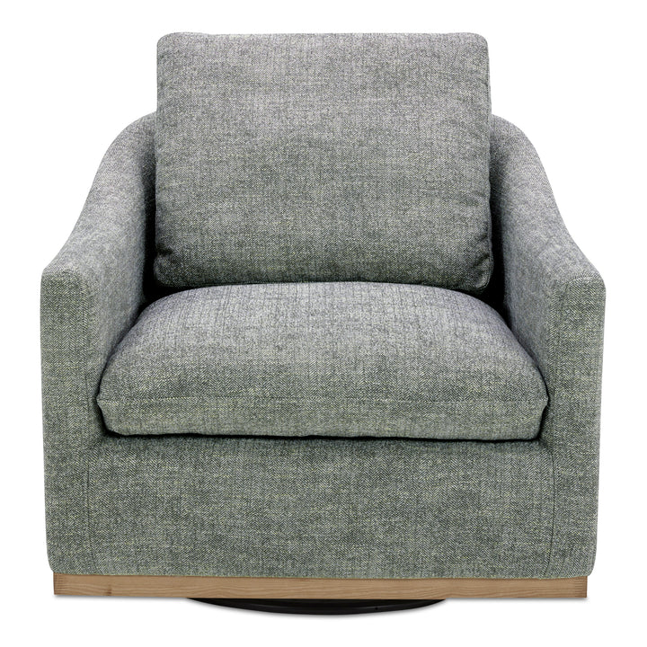 Oriana Swivel Chair, Rustic Curved Barrel Back, High-Density Foam, Slated Moss