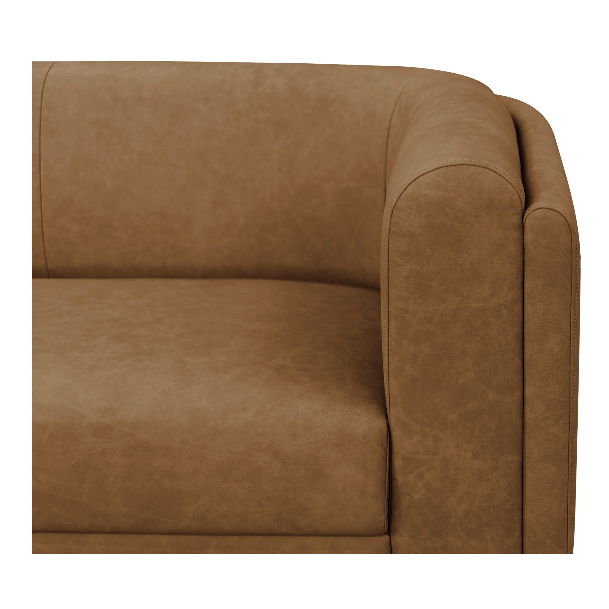 Orion Sofa, Top-Grain Leather Upholstery, Foam & Fiber Cushions, Rubber Wood Frame, Tan