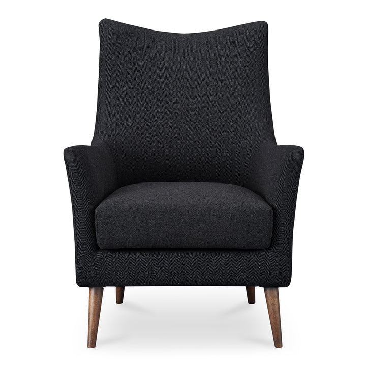 Introducing the NADAAL STUDIOS Percival Accent Chair, a timeless piece that combines rustic charm with modern comfort. This chair features OEKO TEX Standard 100 certified upholstery made from a blend of 50% wool and 50% polyester, offering a soft and textured seating surface. The kiln-dried plywood frame and solid rubber wood legs ensure durability and stability, while the removable foam seat cushion with a removable cover adds convenience. The soft herringbone patterned heritage-like wool upholstery in charcoal, along with the high back and broad seat cushion, make the Percival Accent Chair a perfect addition to any living room, bedroom, or cozy corner.