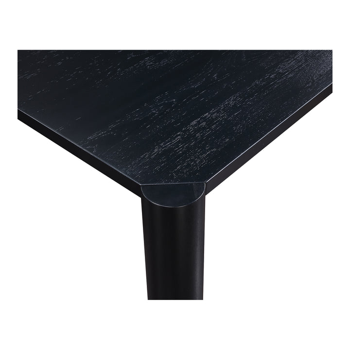 Transform your dining experience with the Nadaal Studios Quentin Dining Table, a modern masterpiece crafted from solid white oak. This stately table features a bold blackened finish with a semi-gloss sheen, exuding sophistication and contemporary charm. Designed with rounded corner posts that add a rhythmic and architectural touch, the Quentin table comfortably seats up to 10 guests, making it perfect for large gatherings or special occasions. Its robust construction and timeless design ensure that this table will remain a centerpiece in your home for years to come. Some assembly required for easy setup.