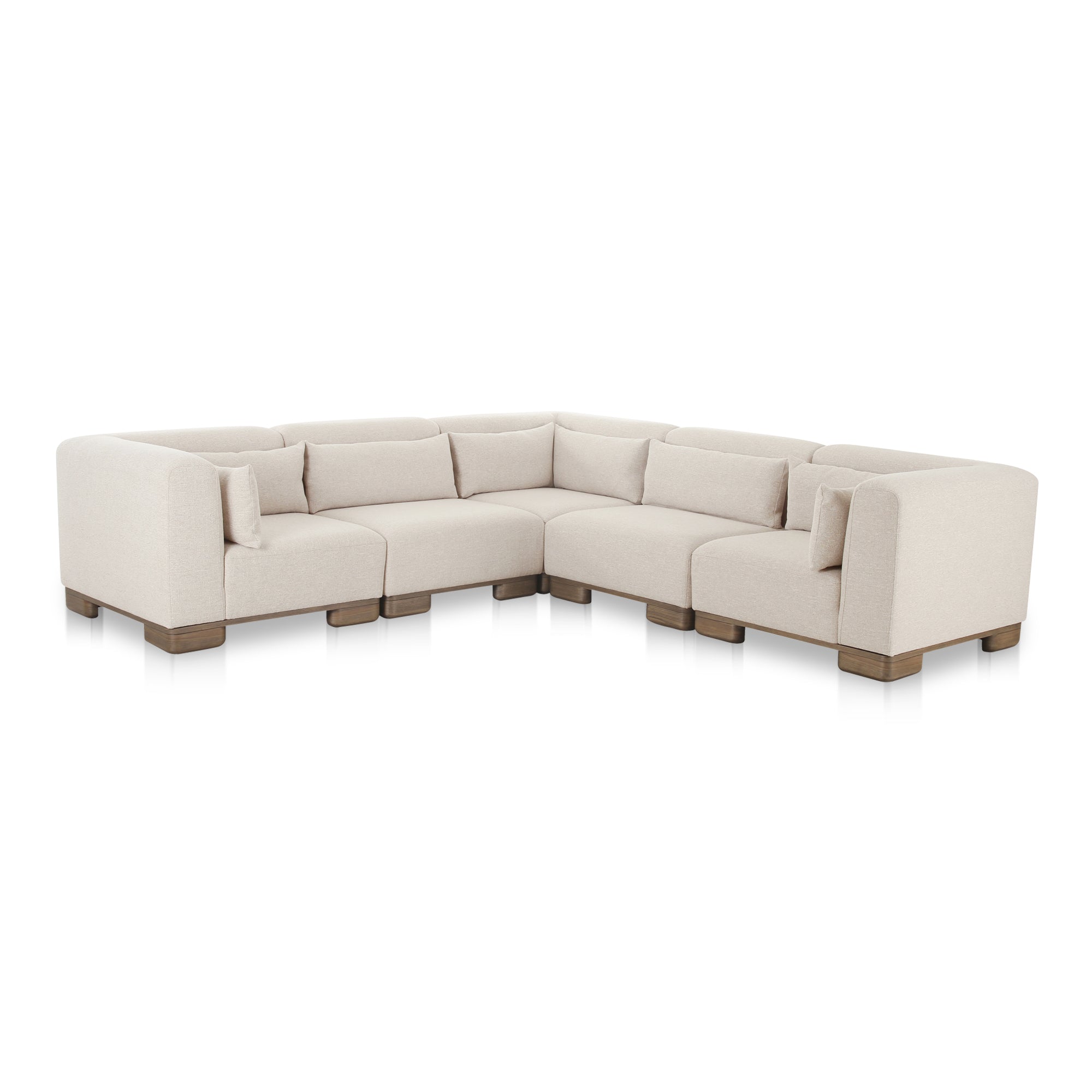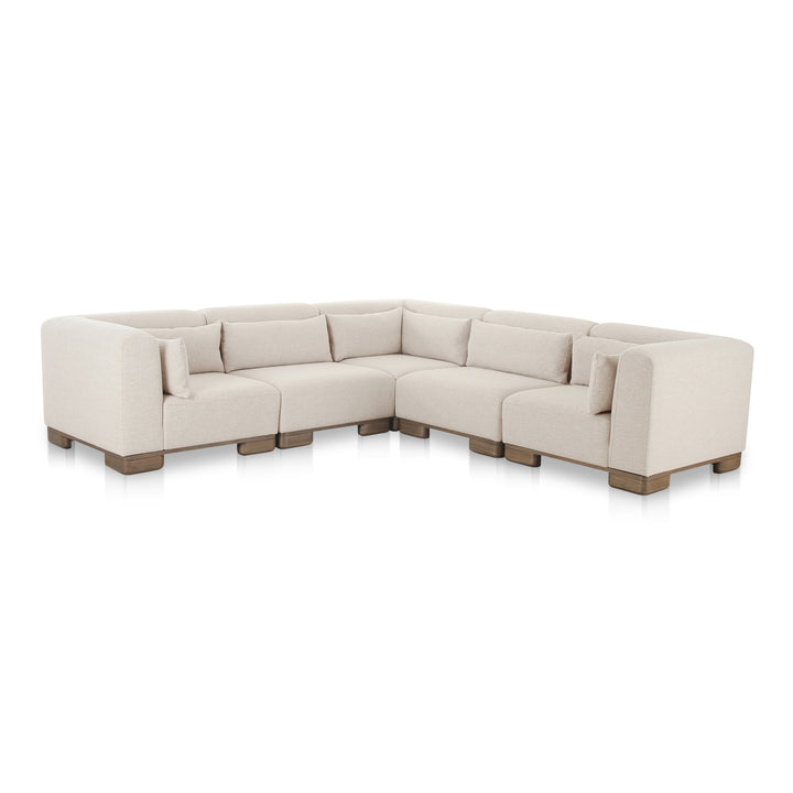 Quinlan Classic L Modular Sectional Sofa, 5-Seater, Upholstered Performance Fabric, Foam and Feather-Filled Cushions, Oak Veneer Base, Oatmeal