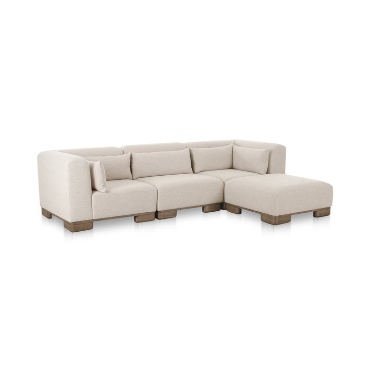Quinlan Lounge Modular Sectional, Upholstered Performance Fabric, Oak Veneer Legs, Foam and Feather-Filled Cushions, Oatmeal Beige