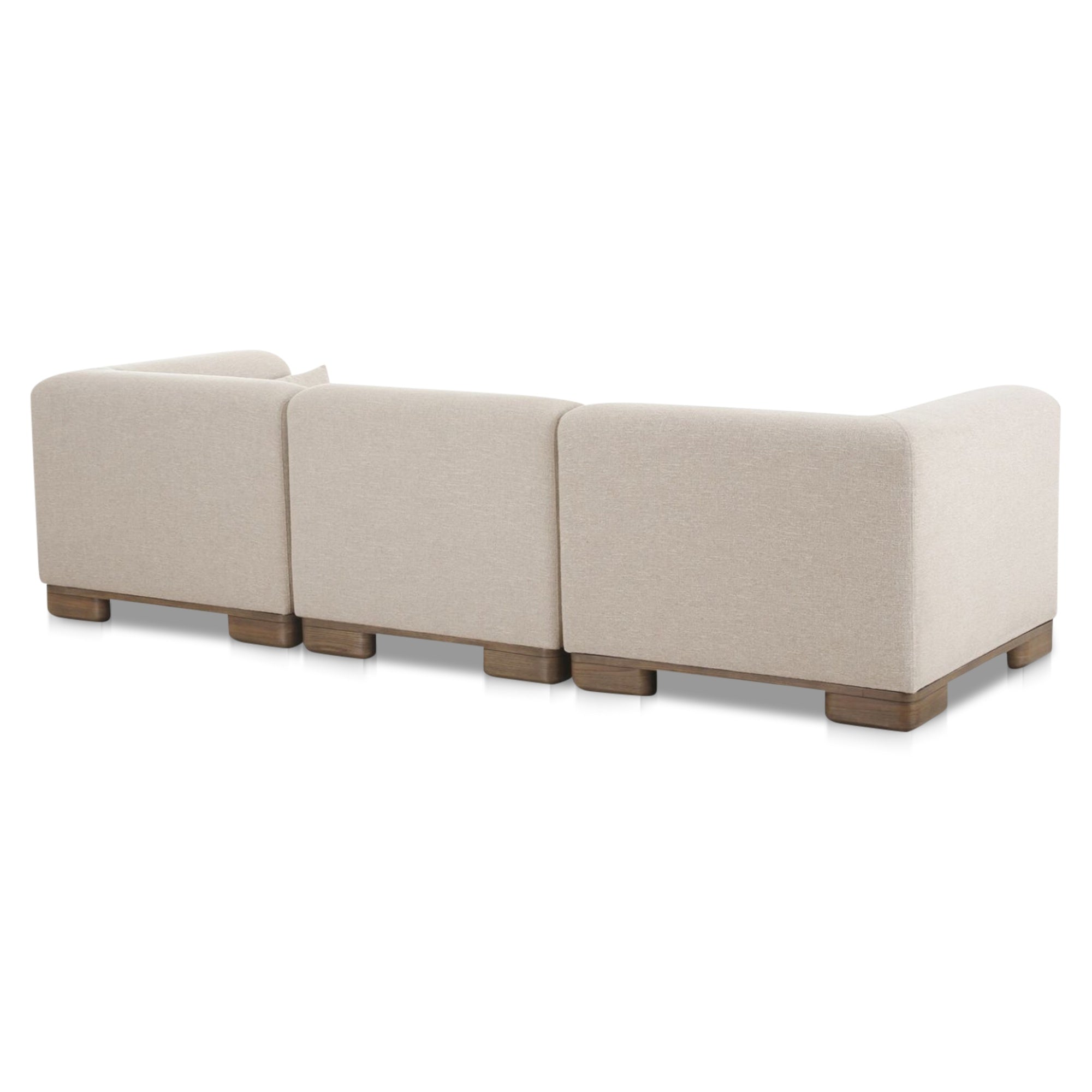 Quinlan Modular Sectional Sofa, 4-Seater, Upholstered Performance Fabric, Foam and Feather-Filled Cushions, Oak Veneer Base, Oatmeal