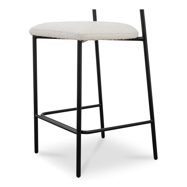 Quinn Counter Stool, Performance Fabric Upholstered Seat, Curved Paper Rope Back, Thin Metal Frame, White