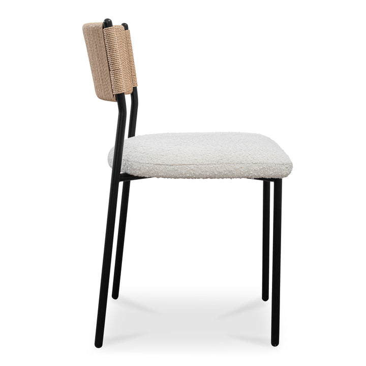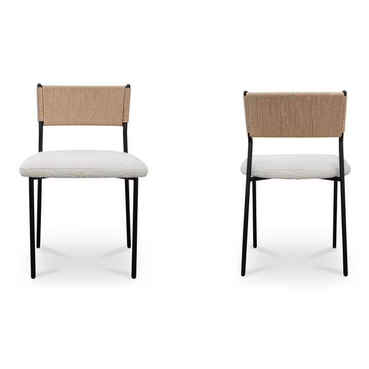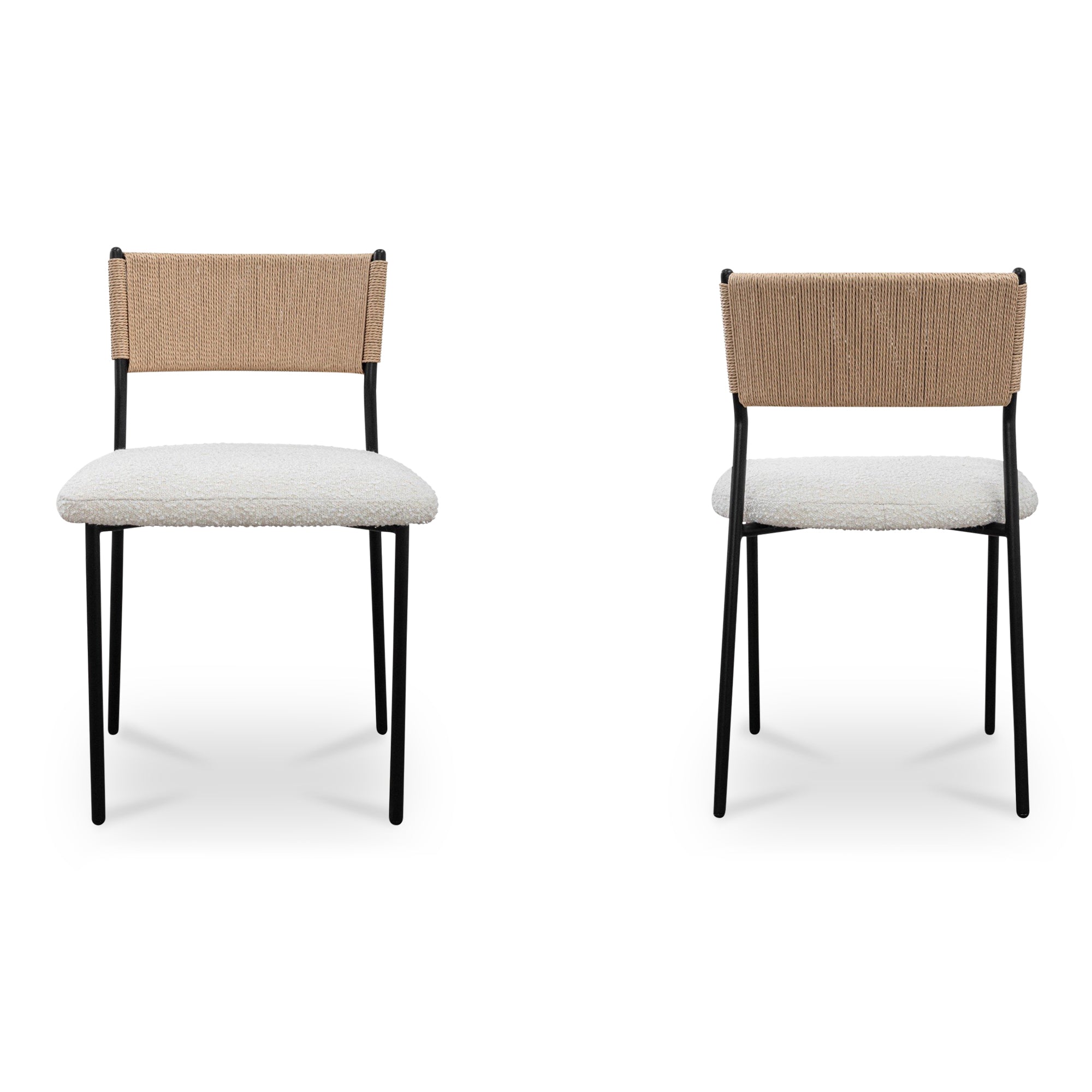 Quinn Dining Chair, Performance Fabric, Paper Rope Back, Slender Metal Frame, White - Set of 2