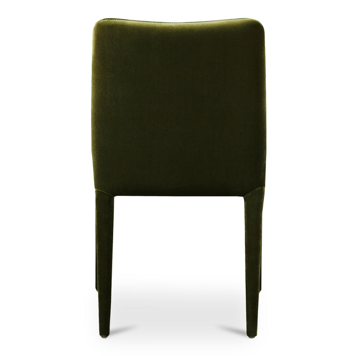 Elevate your dining experience with the Quintessa Dining Chair from Nadaal Studios. Wrapped in plush green velvet upholstery and supported by an ash wood frame, Quintessa blends modern luxury with everyday durability. Its tall backrest, foam-padded seat, and subtly tapered rubber wood legs provide comfort, support, and style in equal measure. Whether used for dinner parties or daily meals, this chair offers timeless form and soft, tactile function that lasts.