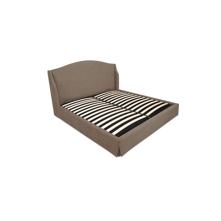 Rastus King Storage Bed, Upholstered Polyester with Solid Wood Frame, Brown