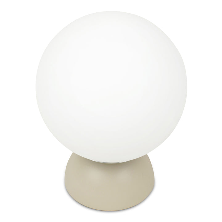 Renwyn Table Lamp, Round Opal Glass Globe with Resin Base and Chrome Detail Soft Beige