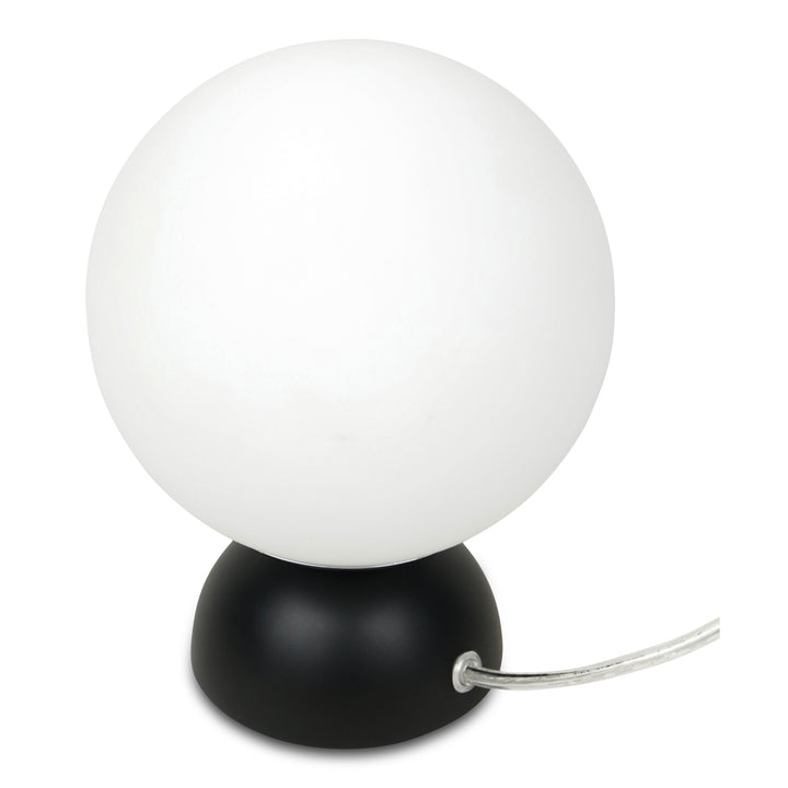 Renwyn Table Lamp, Round Opal Glass Globe with Resin Base Chrome Accent, Black