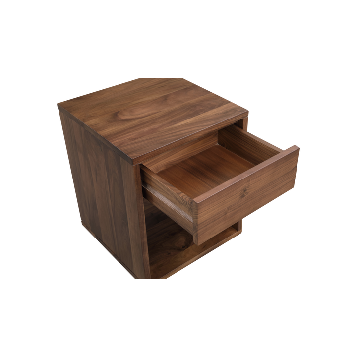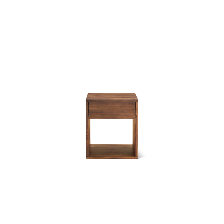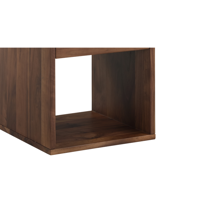 Clean lines and solid wood construction make the Nyx 1 Drawer Tall Nightstand a minimalist’s dream. The timeless design is beautiful in its simplicity, featuring open storage below and a drawer above that slides seamlessly in a wooden channel. This versatile piece can be used as a nightstand or side table, providing functional storage wherever you need it. The taller profile fits perfectly with higher beds or sofas. Crafted from solid walnut, the natural wood offers a warm, organic feel that ages beautifully, with variation in the grain ensuring each piece is unique. The Nyx Tall Nightstand combines modern functionality with timeless design, making it a stylish addition to any space.