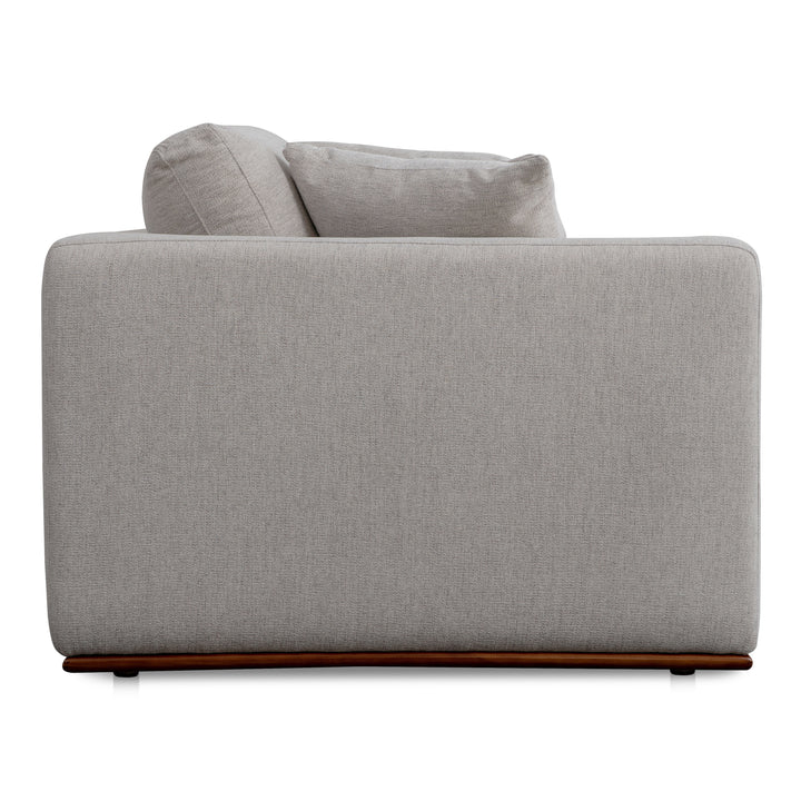 A fusion of elegance and comfort, the Nadaal Studios Rio Corner Chair in Flecked Grey is designed for sophisticated lounging. Featuring a solid rubberwood base with small wooden legs, this chair creates a subtle floating appearance while offering exceptional stability. The removable back cushions and two toss pillows add an element of customizable comfort, while the bench seat is filled with 70% feather and 30% fiber for a luxuriously soft yet supportive feel. Built with a solid wood and plywood frame, the Rio chair is durable, stylish, and ready to anchor your living space—all without requiring assembly.