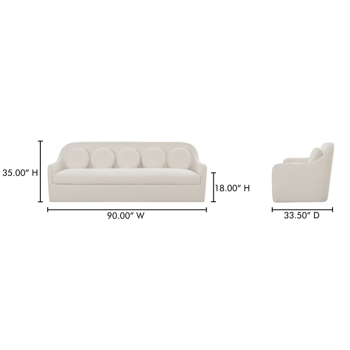 Rivenor Rialto Sofa, High Curved Back, Five Round Toss Cushions, White Performance Upholstery