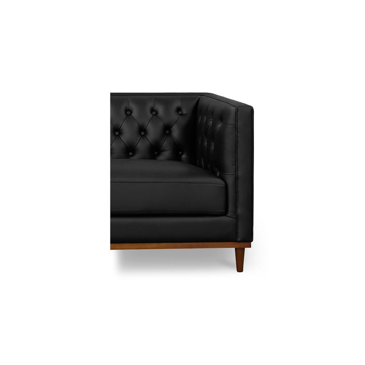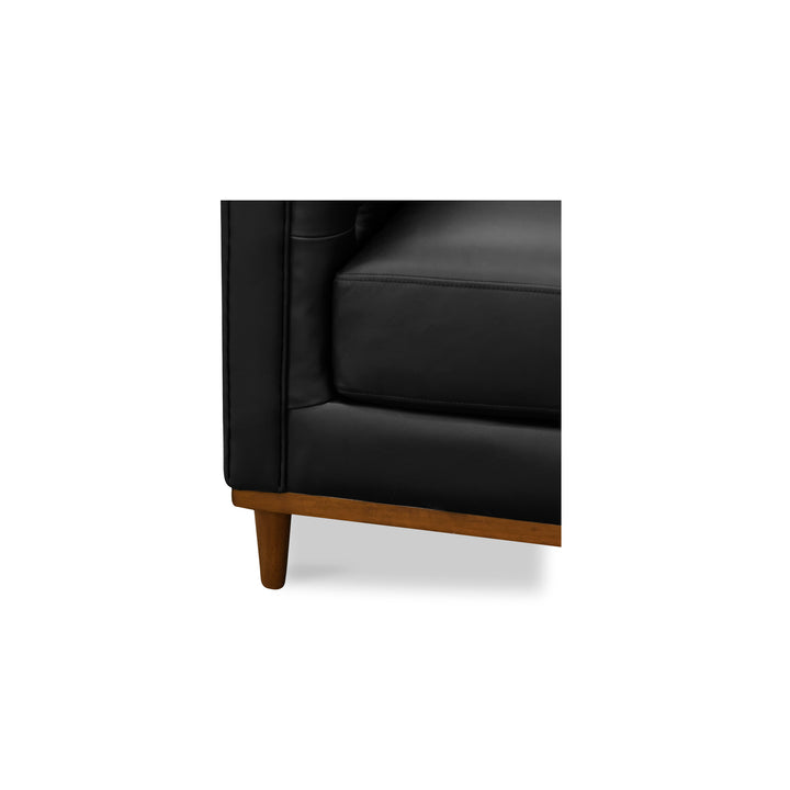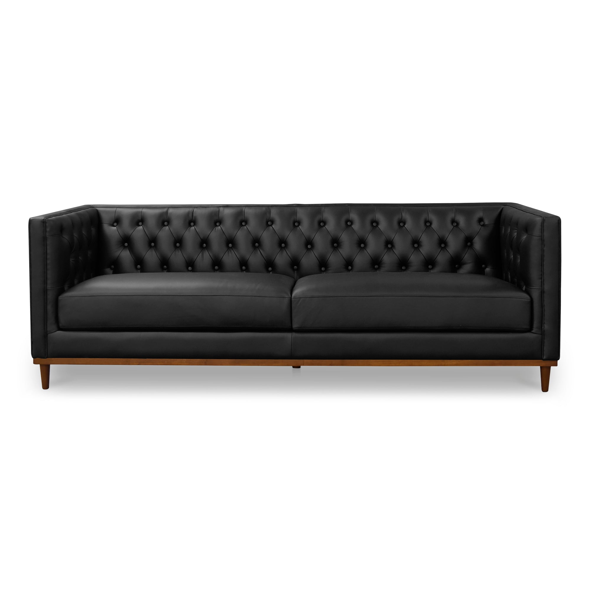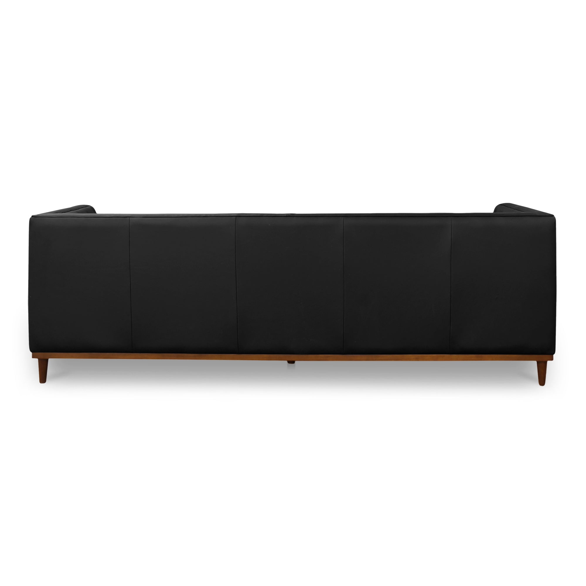 Romanov Sofa, Brazilian Top-Grain Leather Upholstery, Foam & Fiber Cushions, Walnut Finish Base, Black