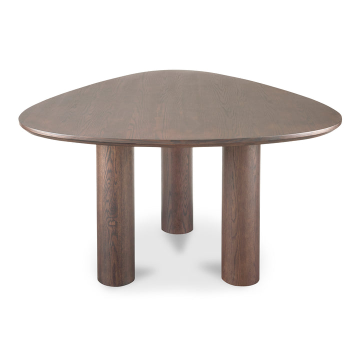 Redefine dining with the Nadaal Studios Sage Dining Table, a contemporary piece that blends organic curves with modern materials. Featuring a freeform tabletop with a rounded triangular shape, this table is finished with a natural ash veneer that highlights the wood’s subtle textures. Built from kiln-dried wood, the Sage table resists warping and cracking, offering durability without the need for harsh chemicals. Its three-column base adds stability and a sculptural touch, making it the perfect centerpiece for your dining room. Comfortably seating up to six, this table is designed for both intimate meals and casual gatherings.