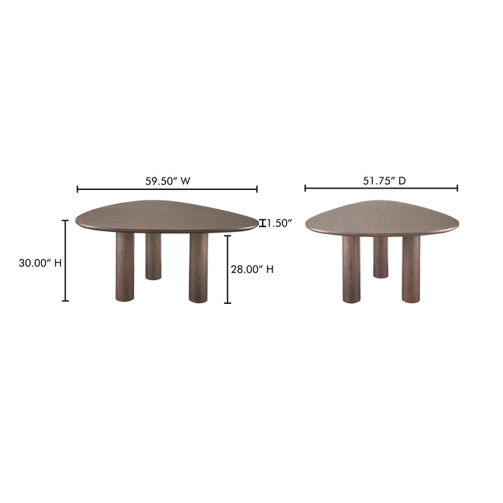 Sage Dining Table, Freeform Oak Veneer Top Over MDF Base with Smoked Finish, Seats 6