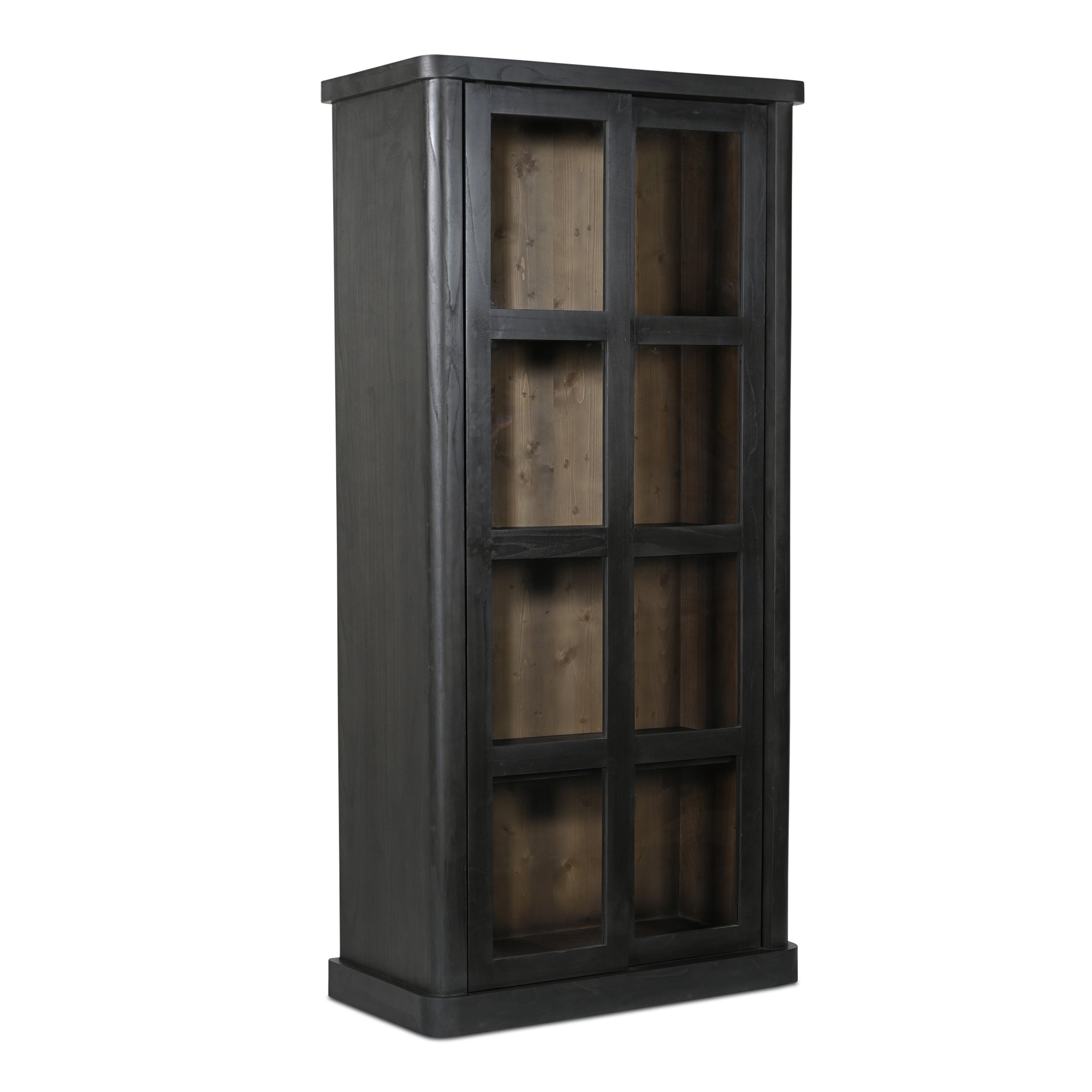 Selira Cabinet, Solid Neem Wood Frame, Glass Sliding Doors, Rounded Corners, Black