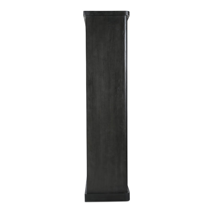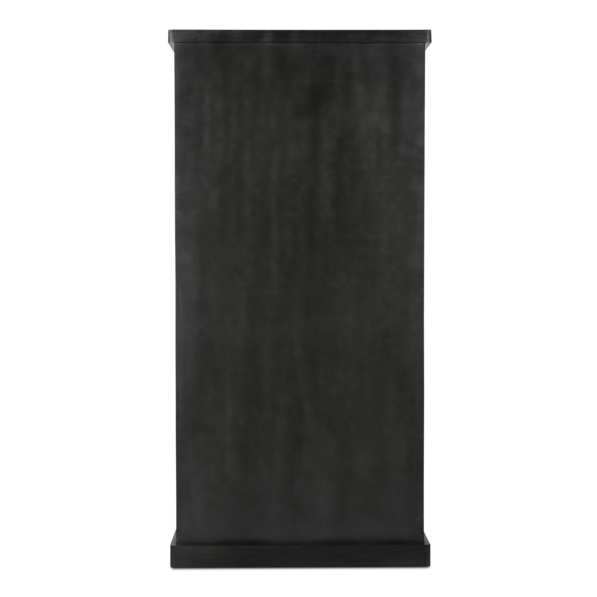 Designed with warmth and contrast in mind, the Selira Cabinet from Nadaal Studios features a bold black neem wood frame with soft, rounded corners and a mid-tone brown interior. Two sliding glass doors reveal the inside without overwhelming the space, making it an ideal display case for treasured pieces or everyday storage. With its tempered glass, thoughtful details, and durable construction, Selira is both striking and functional.