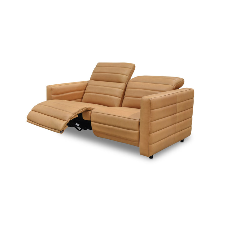Serelith Sofa, Channel-Tufted Top Grain Leather with Power Recline, Rubberwood Frame, Seats 2, Tan